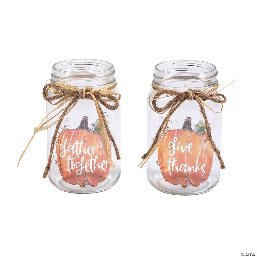 Add some decorative accents to your seasonal decor with these autumn-inspired mason jars! Great by themselves, you can fill them with flowers or use them as favor containers to hand out Fall care packages to friends. Glass. (6 pcs. per unit) 5 1/4″ x 3″ diam.