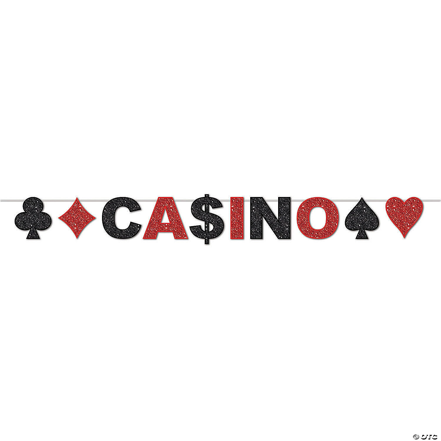 Feeling lucky? You definitely will when you see or walk under this Glitter Casino Pennant Banner! A great addition to casino night party supplies and decorations, this banner is sure to catch everyone’s eyes with the red and black glitter shining and sparkling in your party lights. Cardstock. 8 1/2″ pennants on an 8-ft. banner.