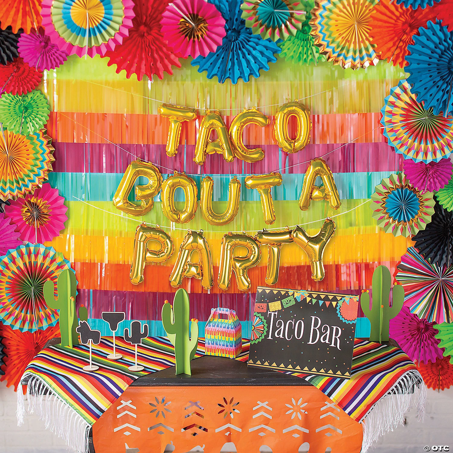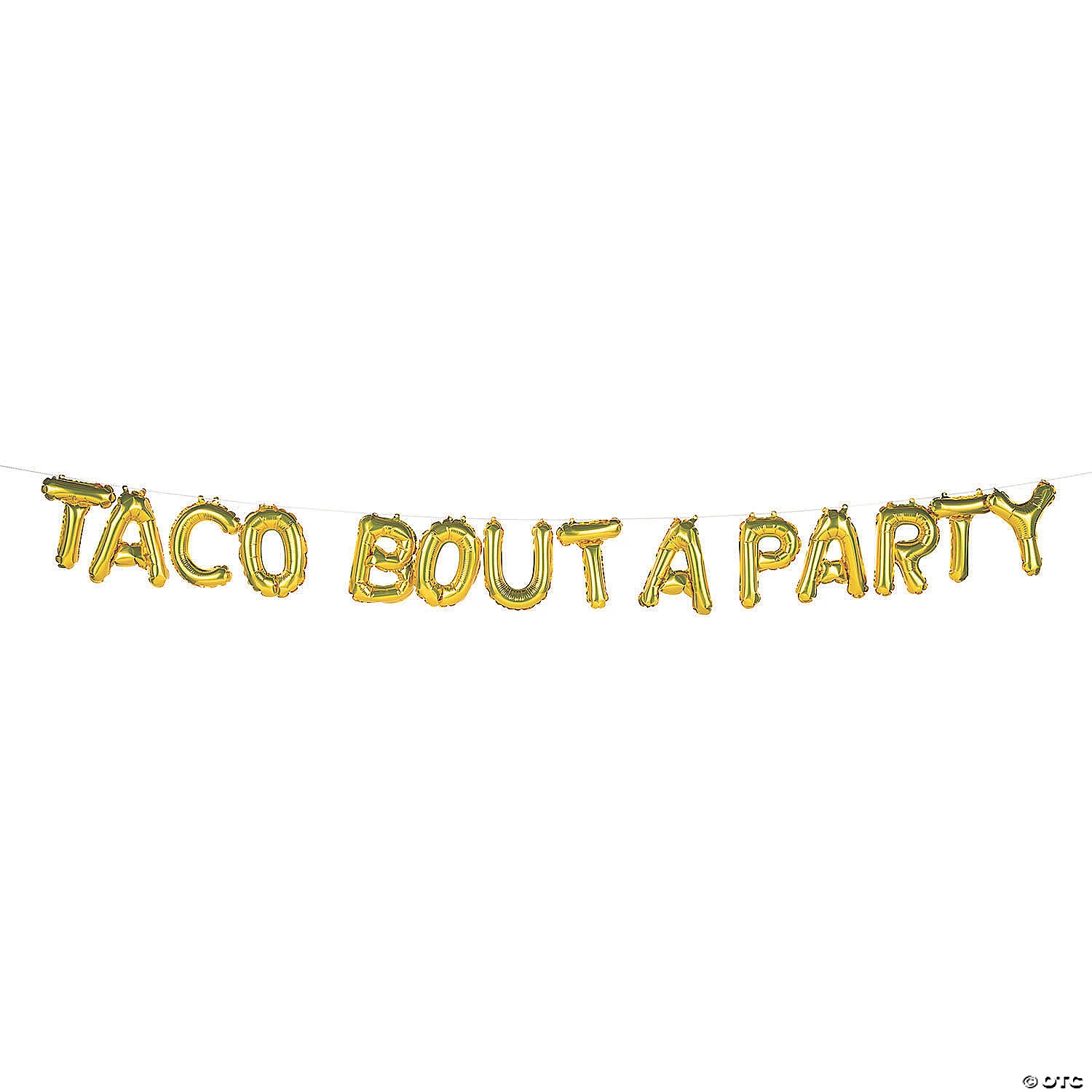 Nothing gets a party started like tacos! If you’re planning a fiesta-themed party or a Cinco de Mayo celebration, this balloon banner is a must-have party decoration! The gold letter balloons spell out your love for tacos and can be used in many ways to complement your fiesta party supplies. Hang the banner above your party’s bar or food buffet to create a photo-ready display! Includes 20 ft. string. (15 pcs. per set) 9 ft. Smash the packet inside each balloon and shake to activate the inflating action. Simple assembly required.