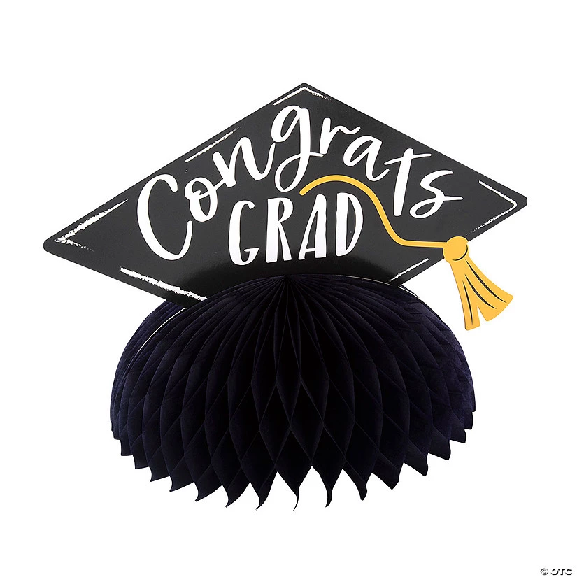 Help celebrate the grad and add these centerpieces to your graduation party decorations. Featuring a honeycombed base, there’s a cardstock cutout on the top that looks like the cap of a mortarboard. Set them out on your party tables and enjoy. Tissue paper and cardstock. (3 pcs. per unit) 4″ x 9″ diam. Simple assembly required.