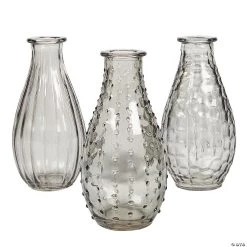 Add instant style to any wedding centerpiece! Coming in a light grey hue and featuring textured vintage style, these bud vases are a must-have for wedding décor. Add a single stem or a full bouquet of flowers to fill each one and then pair together to create a single look that really wows. Or, these can be separated throughout the reception to be used in different centerpieces. Glass. (3 pcs. per unit) 5 3/4″ x 2 3/4″
