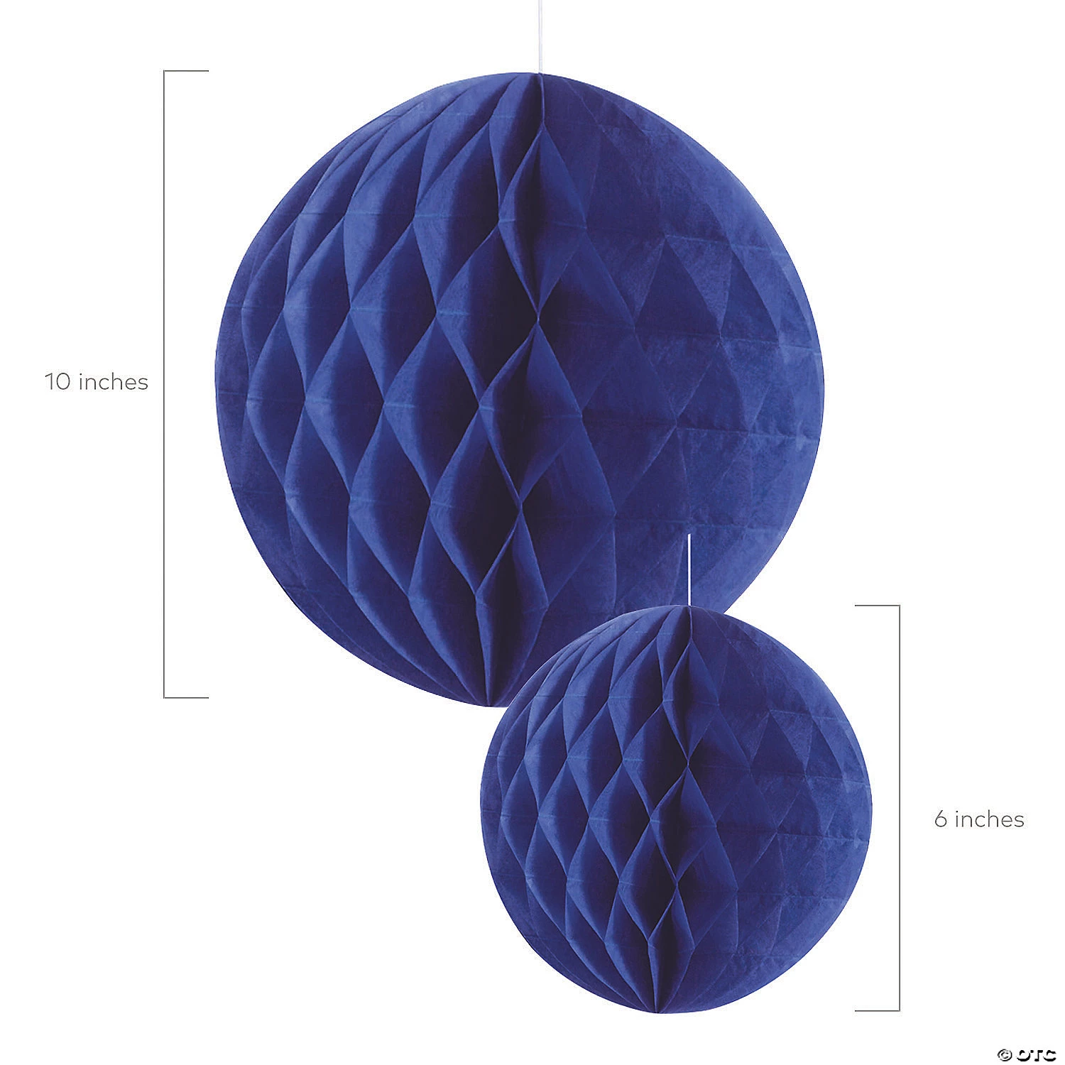 Tissue honeycomb balls are the perfect balance of texture and a splash of color for your next party. Decorations like these hanging honeycombs deliver huge impact on party décor at an affordable price. Combine these honeycombs with other shapes and colors from our wide selection of hanging décor to fill your party space beautifully. Perfect for birthday parties, wedding receptions, grad parties and more. Tissue paper. (6 pcs. per unit) Includes three sizes: 6″, 8″ and 10″ with 3 ft. of white string for each. Simple assembly required.