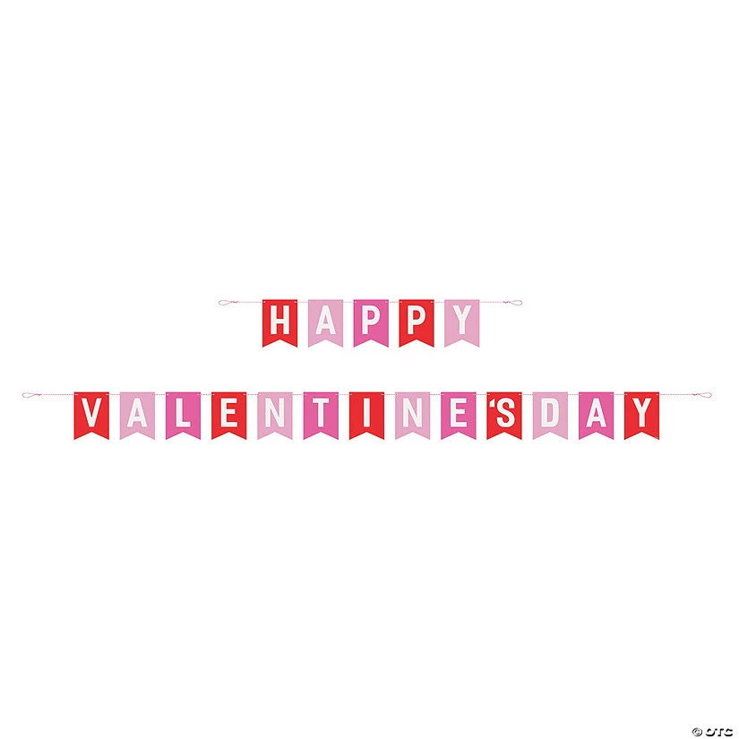 Make your love for Valentine’s Day really stand out with this pretty party decoration! With plenty of red and pink and the words “Happy Valentine’s Day”, this Valentine’s decoration is perfect for a party or for the classroom, or you could string it up for a private celebration with your sweetheart. Paper. (2 pcs. per set) Pennants, 5 1/2″ x 8 1/2″; banner, approx. 8-1/2 ft.