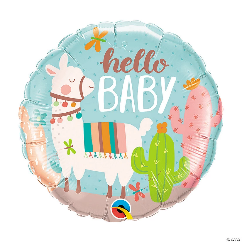 Shower the new mama with love at a llama themed baby shower or gender reveal party! This cute balloon features an adorable grinning llama with cacti in a fiesta setting. Use it for a fiesta themed celebration to show off your new little one! Mylar. 18″