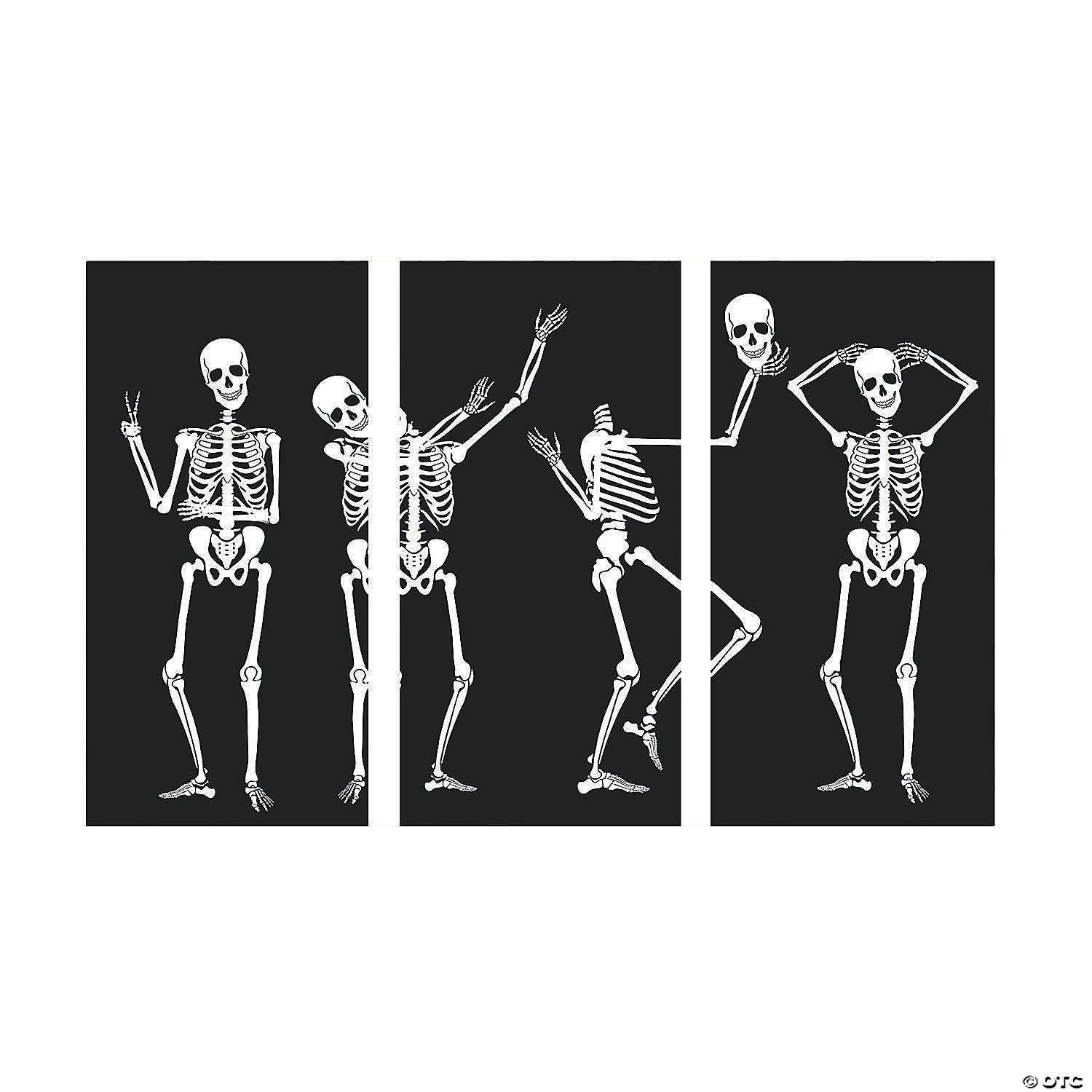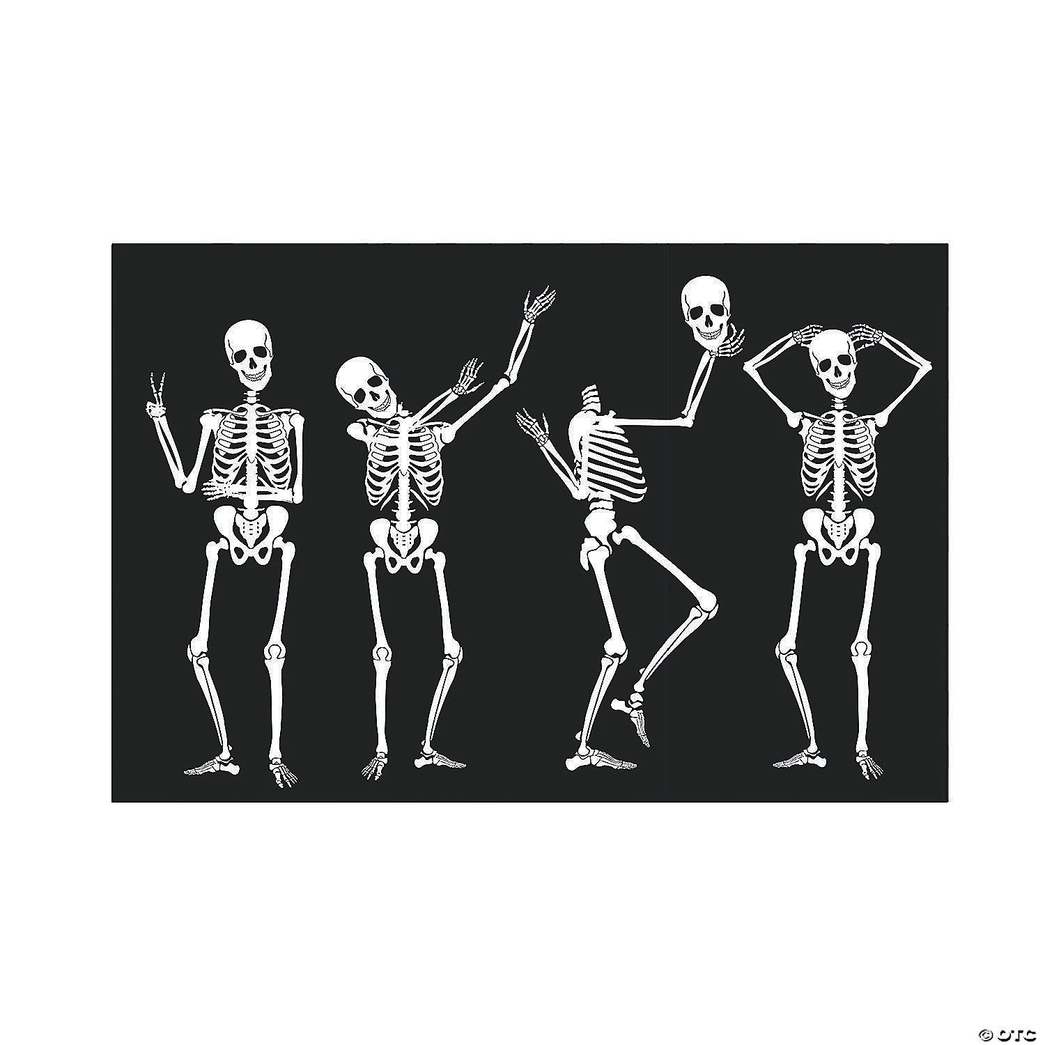 These silly skeletons are ready to party! Add this backdrop banner to your Halloween party supplies for a backdrop to a DIY photo booth or just as a standard Halloween decoration to set the scene for your All Hallow’s Eve event! Plastic. (3 pcs. per set) When Assembled, 9 ft. x 6 ft. Simple assembly required. © OTC