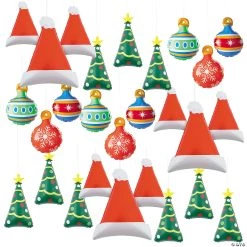 Create a look at your holiday party that will impress guests and give the space a whimsical feel with these inflatable holiday decorations. Each inflatable comes in a holiday shape such as a Santa hat, Christmas tree ornaments and more. These inflatables will help any holiday party space look great and feel like a celebration! (36 pcs. per unit) Assortment may vary.