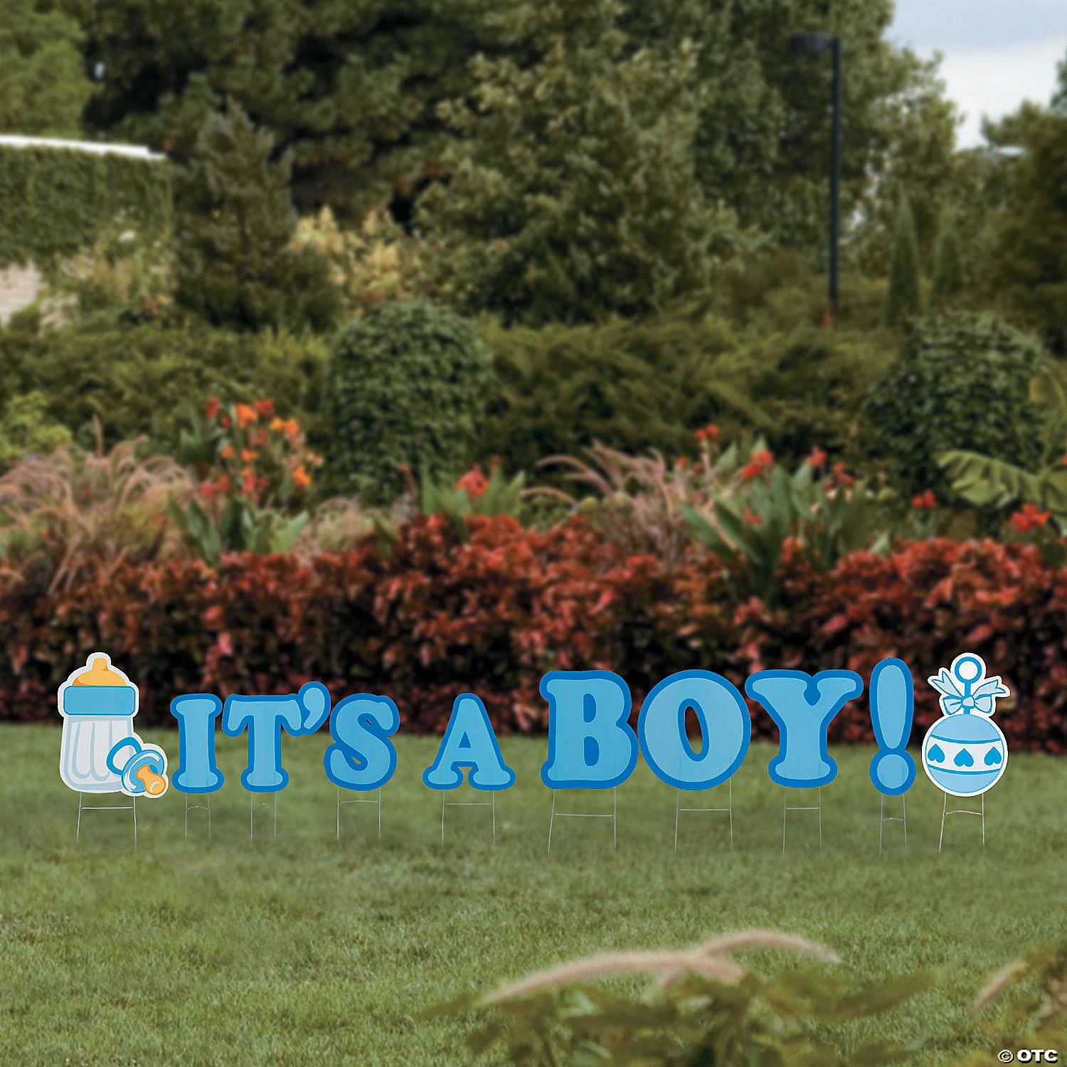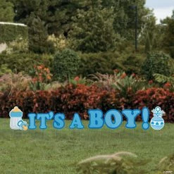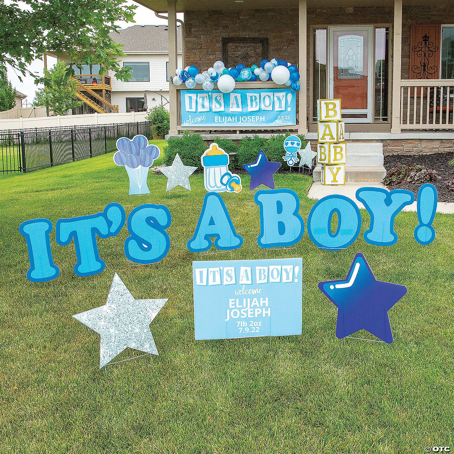 Announce your new bundle of joy in grand fashion with this It’s a Boy Yard Sign! Hang it out in your yard to announce the new arrival or for your gender reveal party. (10 pcs. per set) Includes 8 letter and icon signs and 8 stakes. Letters and icons, approx. 18″ – 25″ ; stakes, 10″ x 15 1/2″. Simply assembly required.