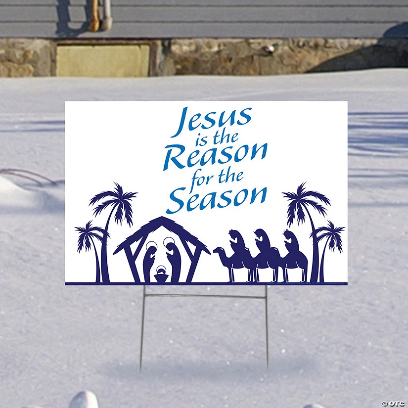 Set out this gentle reminder of the real meaning of Christmas in your front yard this year! A great way to point out that the holiday season is about celebrating the birth of baby Jesus, this yard decoration would look great alone or next to your nativity scene at home or church. Corrugated plastic. Includes metal stakes. 23″ x 15″ Simple assembly required.