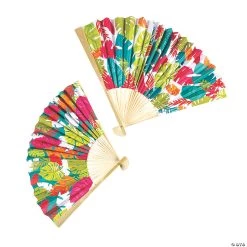 Add color and cheer to your island getaway soirĂ©e! A must-have addition to luau party dĂ©cor, these large hanging folding fans feature an eye-catching design of tropical leaves in hues of orange, pink, green and blue. You’ll love displaying these from the ceiling or against walls, instantly transforming any space into the party place! Wood with paper. (2 pcs. per set) 20″ x 24″ diam.
