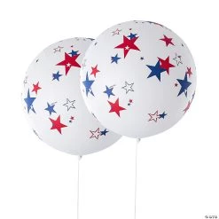 • QUALITY DECORATIONS: If you’re planning a Fourth of July party, these high-quality balloons have you covered. They’re unique balloons that can easily be mixed and matched with other balloon options for your ideal color scheme or event theme.• ADD BALLOON ACCESSORIES: Add visual interest to your Independence Day party space; creating fun décor pieces is easy when you add balloon accessories (sold separately on this site) such as ribbon, balloon weights, balloon cups, balloon strips for garlands and more to transform them into the ultimate party decoration!• EASY TO INFLATE: These balloons are easy to inflate with air or helium! We recommend using helium if you plan to add them to balloon accessories (such as a weight with ribbon), so they stay afloat!• PARTY SUPERSTORE: We are your one-stop party shop! Come to Oriental Trading for all of your party supply needs, from party decorations to tableware to party favors and more.Product Description:Prepare for a patriotic party! Featuring red and blue stars on a white background, these Independence Day decorations are perfect for adding Fourth of July flair to your celebration. Popping with stars, they’re super-sized and made for grabbing attention, so add them to the buffet table, or tie them to the mailbox to let everyone know where the party is! Size: 36″Quantity: 2Material: Latex© OTC