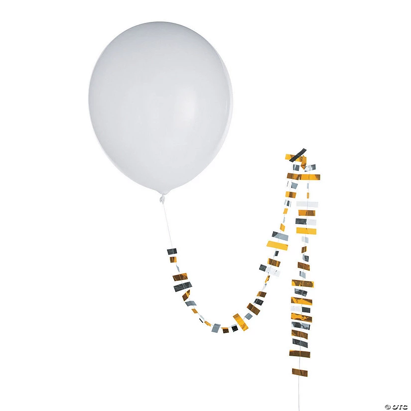 Air-filled fabulous fun! This Jumbo Latex Balloon with Metallic Tassel adds an extra glamorous touch to wedding reception decorations or birthday party supplies. With a shimmering gold and silver tassel, this balloon is perfect for setting at the entryway of any chic celebration to great guests in style. It can also be added to a wedding table to dress up a centerpiece or used to turn any space into the party place for bachelorette festivities, too! (1 pcs. per unit) 36″ with a 5-ft. foil tassel. Simple assembly required. © OTC