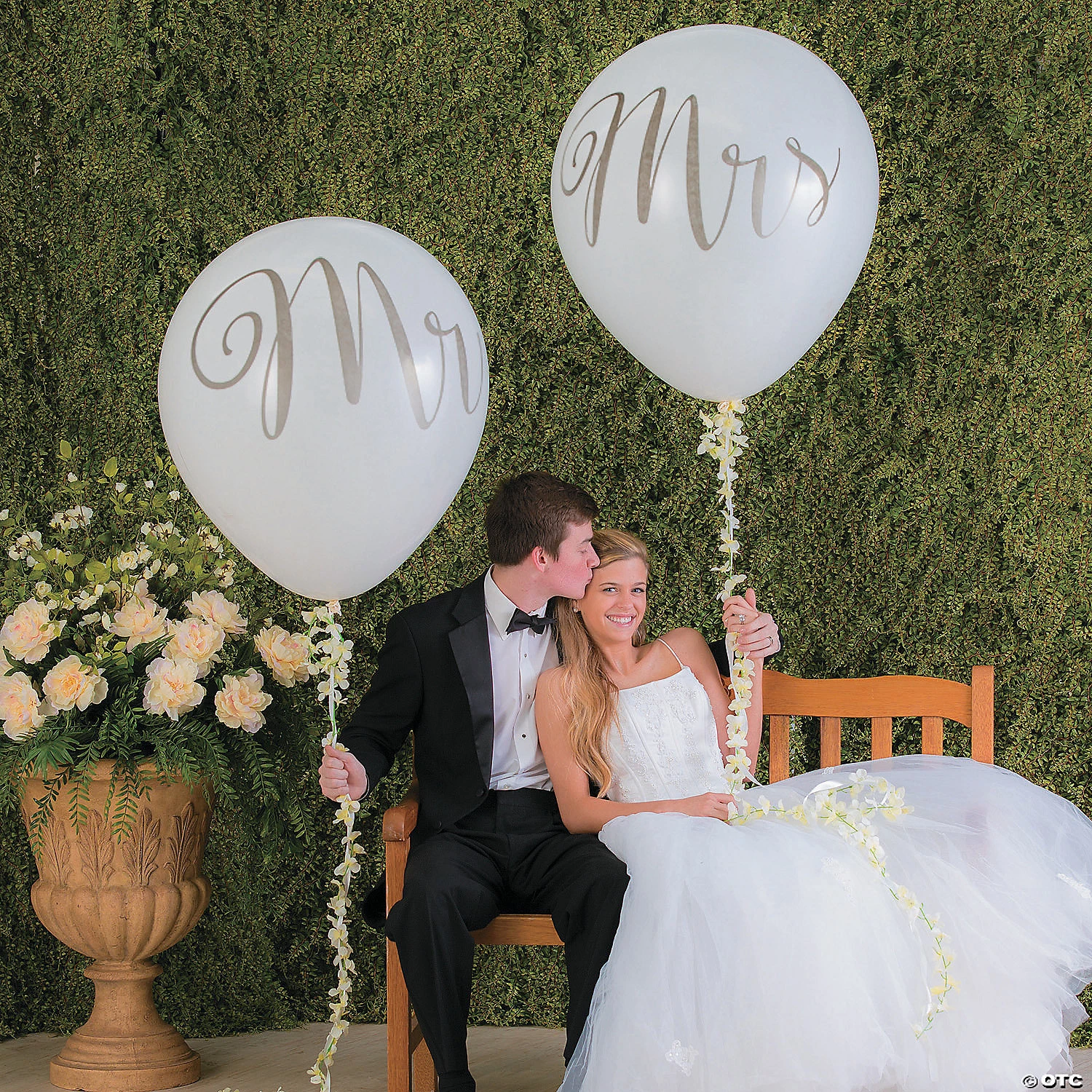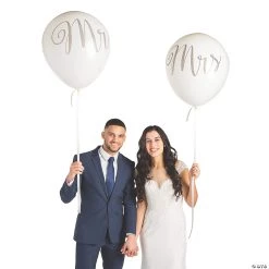 A definite must for wedding party supplies, these over-sized wedding balloons look amazing floating over the head table at wedding receptions or when placed near the gift or cake table. Fun, whimsical and classic, Mr. & Mrs. wedding balloons are fun bridal shower or wedding reception decorations. Combine them with other latex or mylar balloons available on our site to create a balloon bouquet that wedding guests can’t miss! (2 pcs. per set) 3 ft.