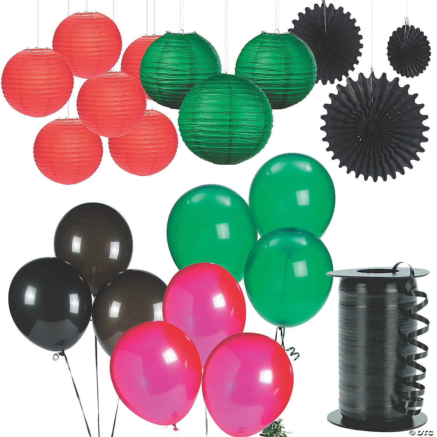 • QUALITY DECORATIONS: These sturdy, versatile decorations can be used time and time again to celebrate Kwanzaa! • BUDGET-FRIENDLY DIY DÉCOR: Not just for parties, these Kwanzaa decorations make beautiful, affordable additions to your home décor, classroom decorations, dorm décor and more.• EASILY ASSEMBLE AND REUSE TIME AFTER TIME: These Kwanzaa decorations are easy to assemble and hang. Simply fold them flat after use for easy storage until your next celebration!• PARTY SUPERSTORE: Shop Oriental Trading for all of your party supply needs, from decorations to tableware to party favors and more.Product description:Make your Kwanzaa celebration even more colorful and vibrant with the help of this impressive decorating kit. Chock full of Kwanzaa colored party decorations, this decorating kit can transform any space into a vibrantly colored Kwanzaa celebration space. Simplify Kwanzaa celebration planning with the help of this kit. Assortment may varyQuantity: 97 Pc.Includes:• 24 Emerald Green Latex Balloons (11″)• 24 Onyx Black Latex Balloons (11″)• 24 Ruby Red Latex Balloons (11″)• 1 Polypropylene Curling Ribbon Roll (3/16″ x 500 yds.)• 12 Black Tissue Paper Hanging Fans (Includes 4 of each 8″, 12″ and 16″ diam.)• 6 Green Paper Lanterns (12″ Includes metal hangers. Simple assembly required.)• 6 Red Paper Lanterns (12″ Includes metal hangers. Simple assembly required.)