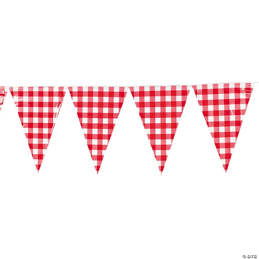 There’s nothing like giving summer BBQs, company picnics and family reunions some gingham to make them feel complete. This Large Red Gingham Pennant Banner is the perfect way to enhance your summer activities. You’ll love how much it adds to everything from decorating your party space to marking the finish line for races or obstacle courses. It also makes a great 4th of July decoration! Vinyl. 20″ x 28″ pennants hang from a 24 ft. banner. © OTC