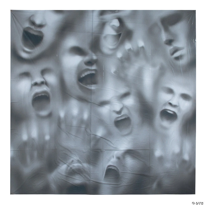 These lost souls are trying to break through! A creepy addition to your Halloween decorations, you can set it up as a backdrop to a DIY photo booth at a Halloween party, or hang it up as part of your seasonal décor to give visitors a scare. Plastic. 6 ft. x 6 ft.