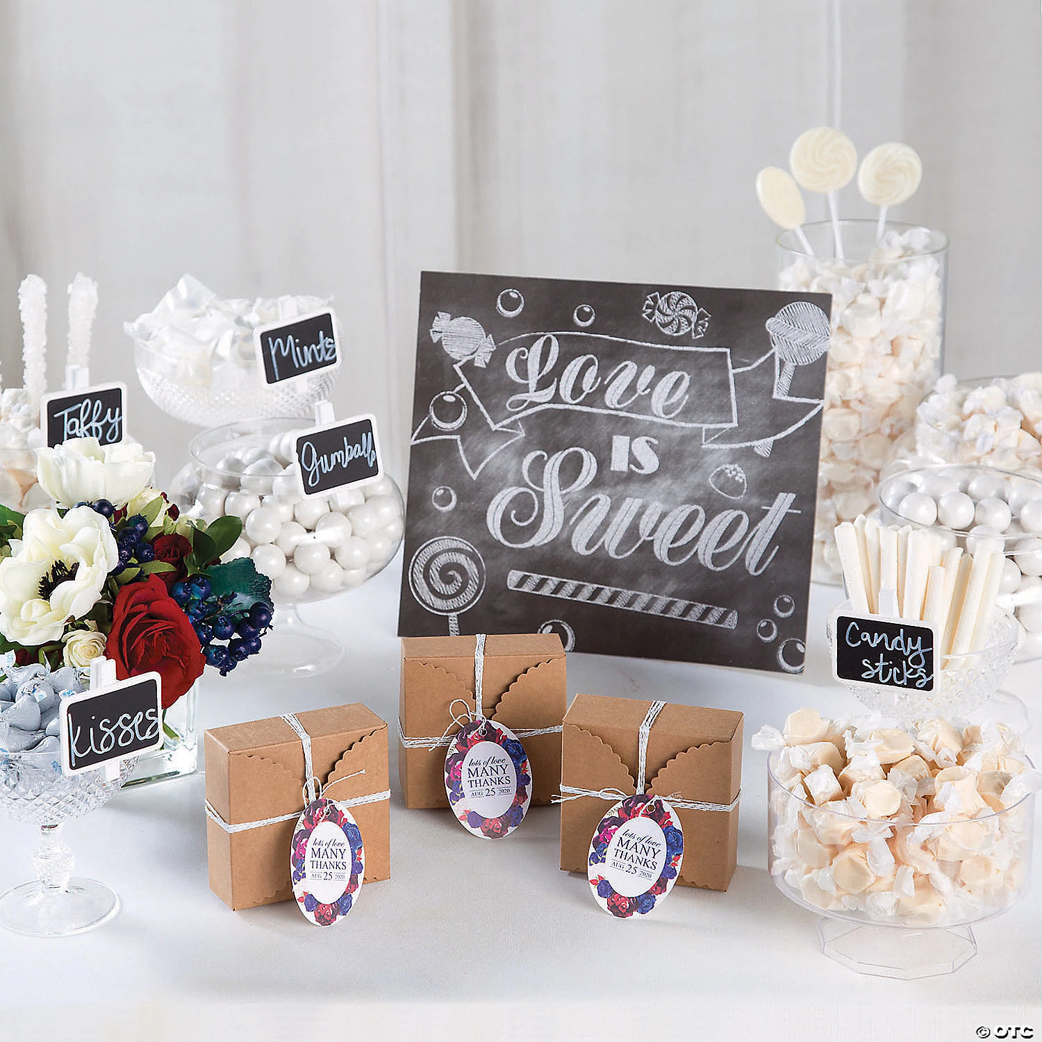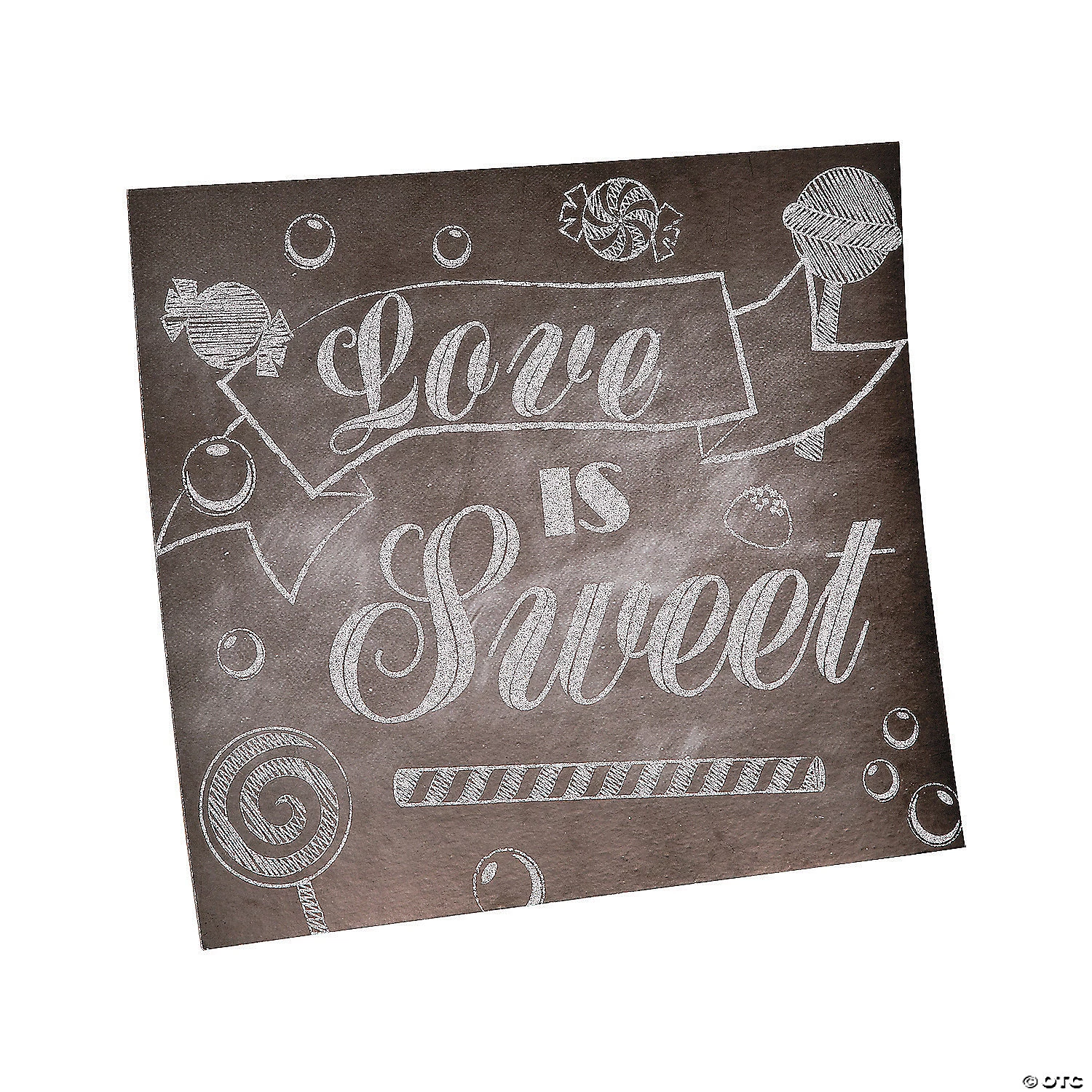 Show how sweet your love really is with this Love Is Sweet Table Sign. A sleek addition to your wedding reception supplies, this cardboard sign is printed with “Love Is Sweet” and assorted candy images. Set it atop your wedding party table to create a cute photo op, or buy in bulk and create your own wedding table centerpieces! 12″ x 10 1/2″ © OTC