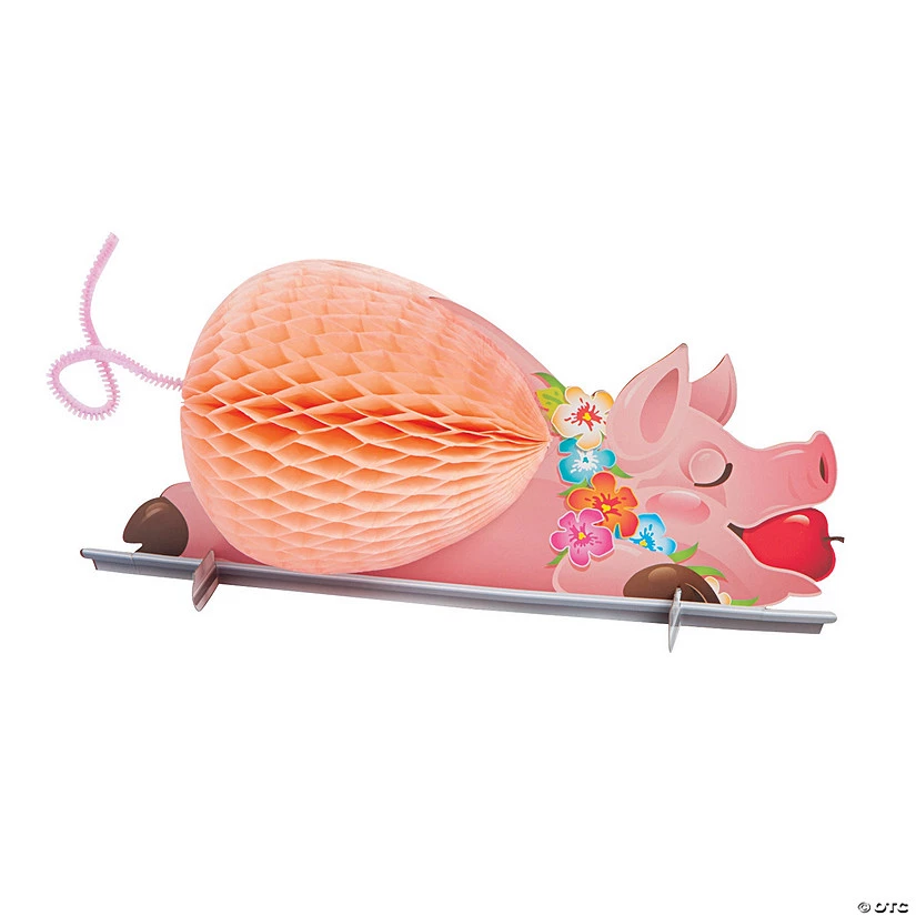 When you can’t get the real thing, this decoration makes a “swine” alternative. Cooking a pig is an important part of Hawaiian Luau celebrations and this Luau Pig Tissue Centerpiece is a whimsical alternative that you can use for your own backyard Luau. This tissue centerpiece makes a fun addition to your beach party supplies and is especially great when you need beach party ideas to decorate a dinner table. Paper. 12 7/8″ x 5 1/4″ x 6 1/2″ Simple assembly required. © OTC
