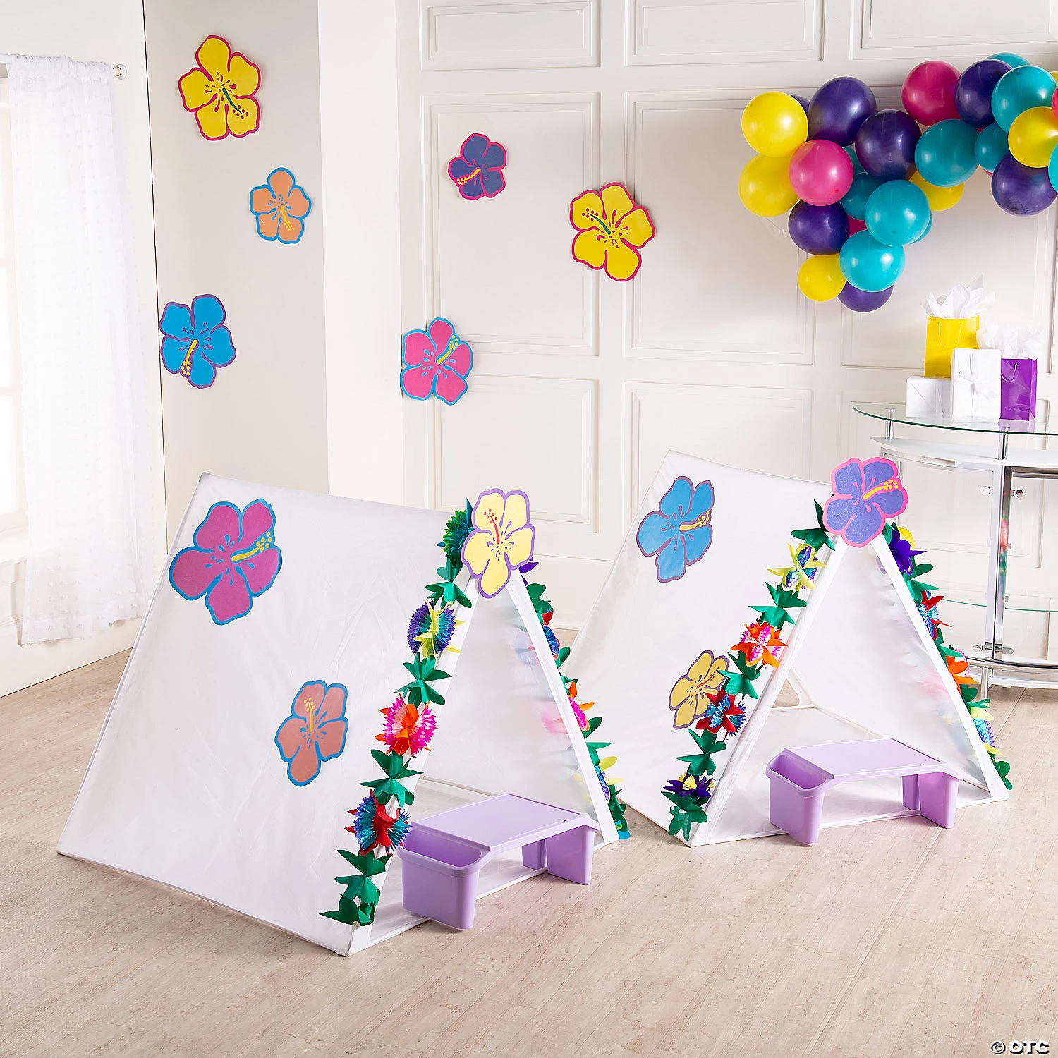 • 4 Nonwoven Polyester White Sleepover Tents (45″ x 43″ x 40″ Simple assembly required.)