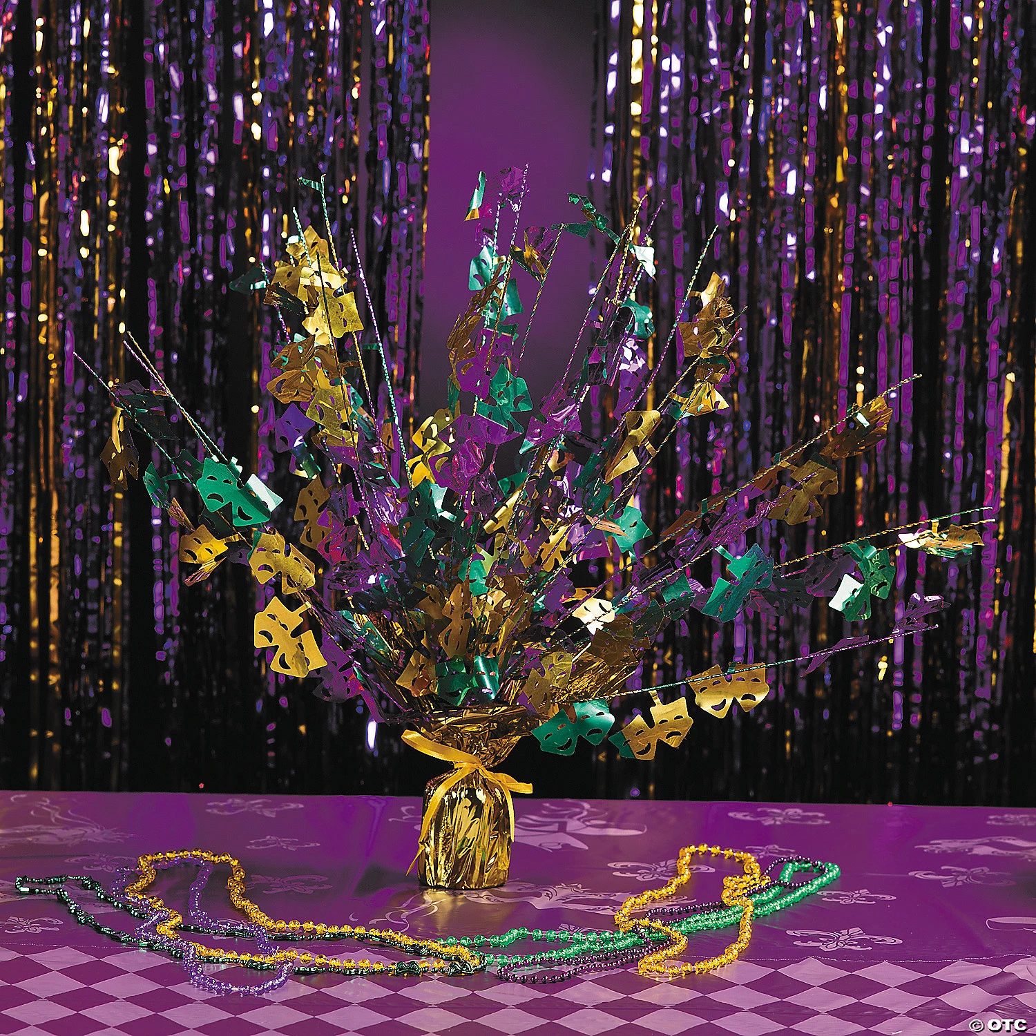 Order several of these Mardi Gras Foil Burst Table Decorations and put one on each of your Mardi Gras tables! With a sparkling green, gold and purple design, these Mardi Gras centerpieces will add a touch of New Orleans to your festival! Freestanding, made of bendable wire wrapped in metallic foil. 15″