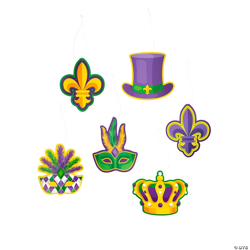Get your mardi on! These colorful party decorations can help you host the ultimate Mardi Gras party. Also great for celebrating Fat Tuesday, these decorations feature masks, crowns and other iconic Mardi Gras symbols in bright yellow, green and purple colors. Cardstock. (6 pcs. per unit) 9 1/2″ – 12″ x 9-1/2″ – 11-1/2″ © OTC