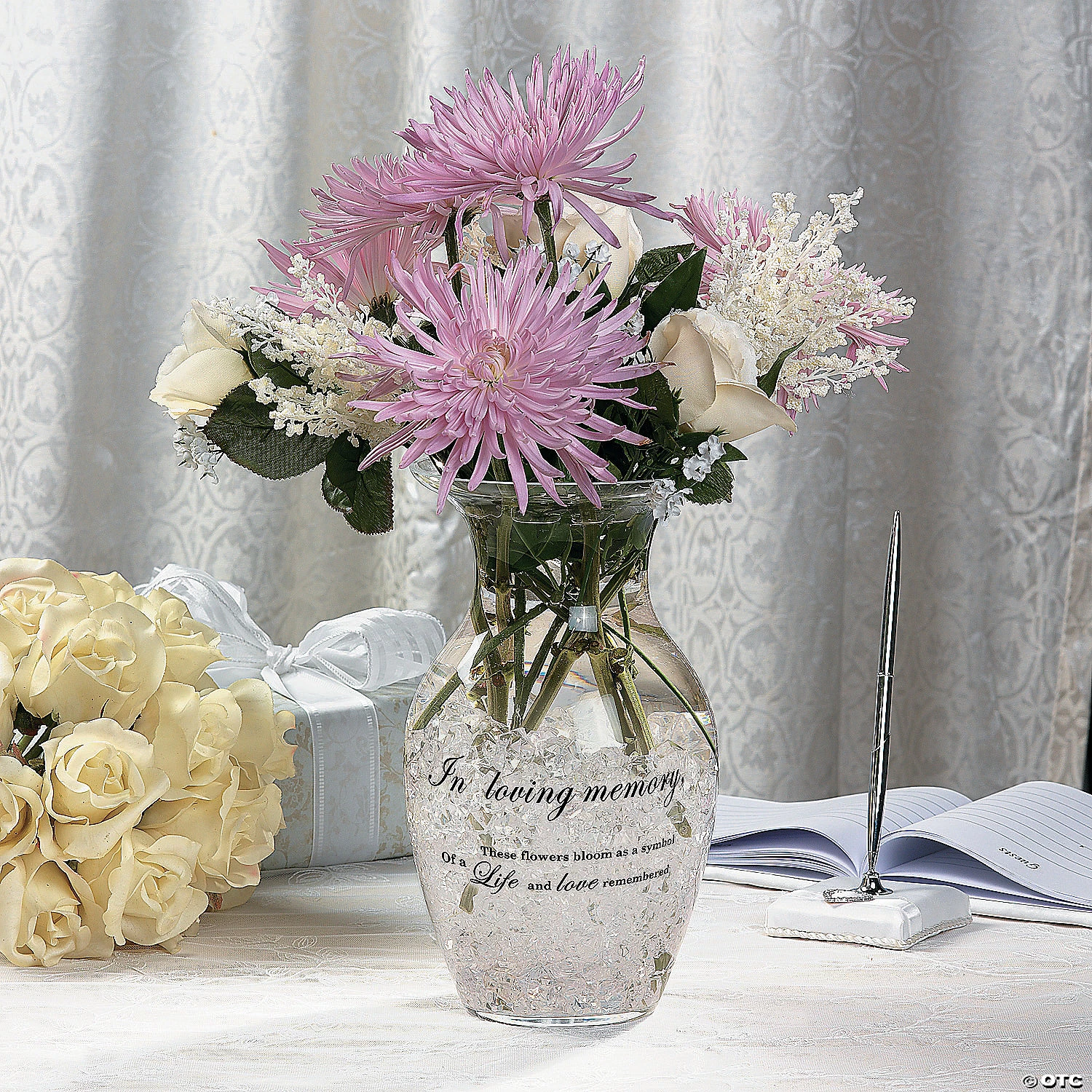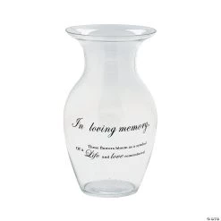 This beautiful, elegant glass vase is a special way to honor the memory of loved ones. It’s perfect for memorial services and as a treasured keepsake of a beloved life. With a simple, classic design, this decorative vase reads: “In loving memory, these flowers bloom as a symbol of a life and love remembered”. Glass. 10″ Hand wash only.