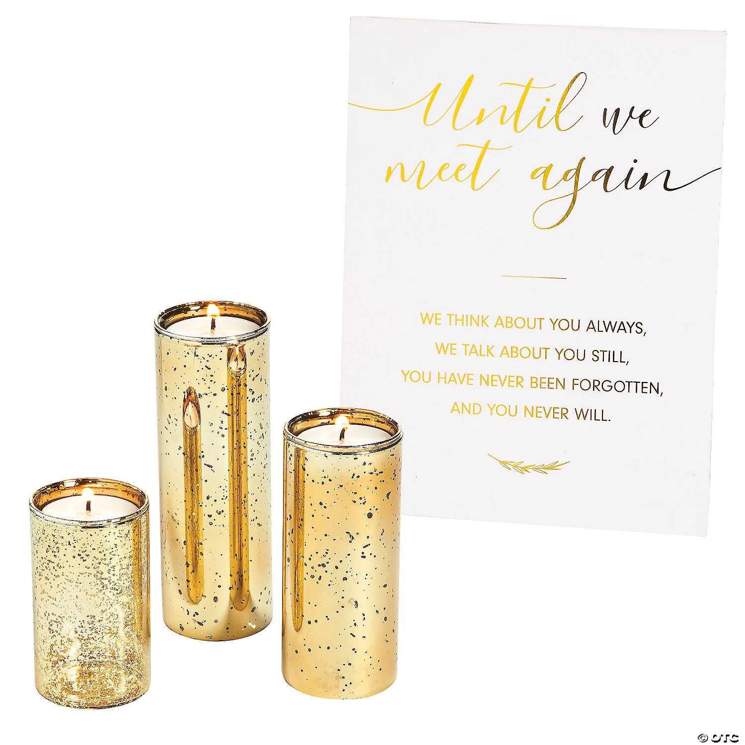 Honor the memory of a loved one with this helpful and decorative kit. Featuring a touching sign with a lovely poem and gold candle holders, this kit is the perfect solution to setting up a table for reflection at a memorial service, funeral or celebration of life. Celebrate the life of someone special with this memorial kit. (4 pcs. per unit) Assortment may vary.