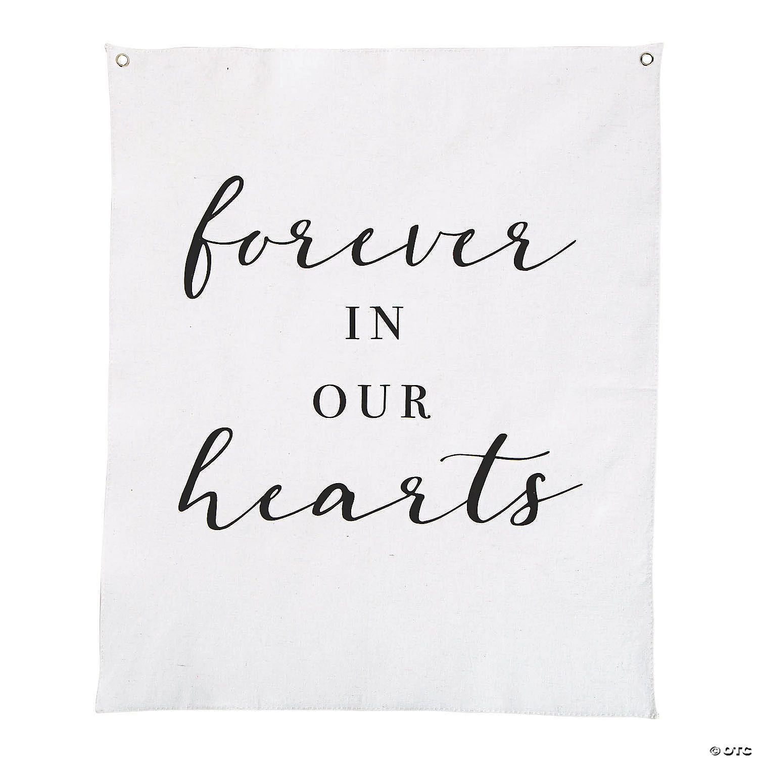 Loved ones may be gone, but they’re never forgotten. Honor loved ones who passed before the wedding with this lovely banner. Simple and elegant, this banner can be hung on its own or placed alongside photos of loved ones. It’s a nice way to pay a loving tribute to those who are no longer with you and make the wedding ceremony include everyone you love. Cotton. 20″ x 24″ Includes metal grommets for hanging. © OTC