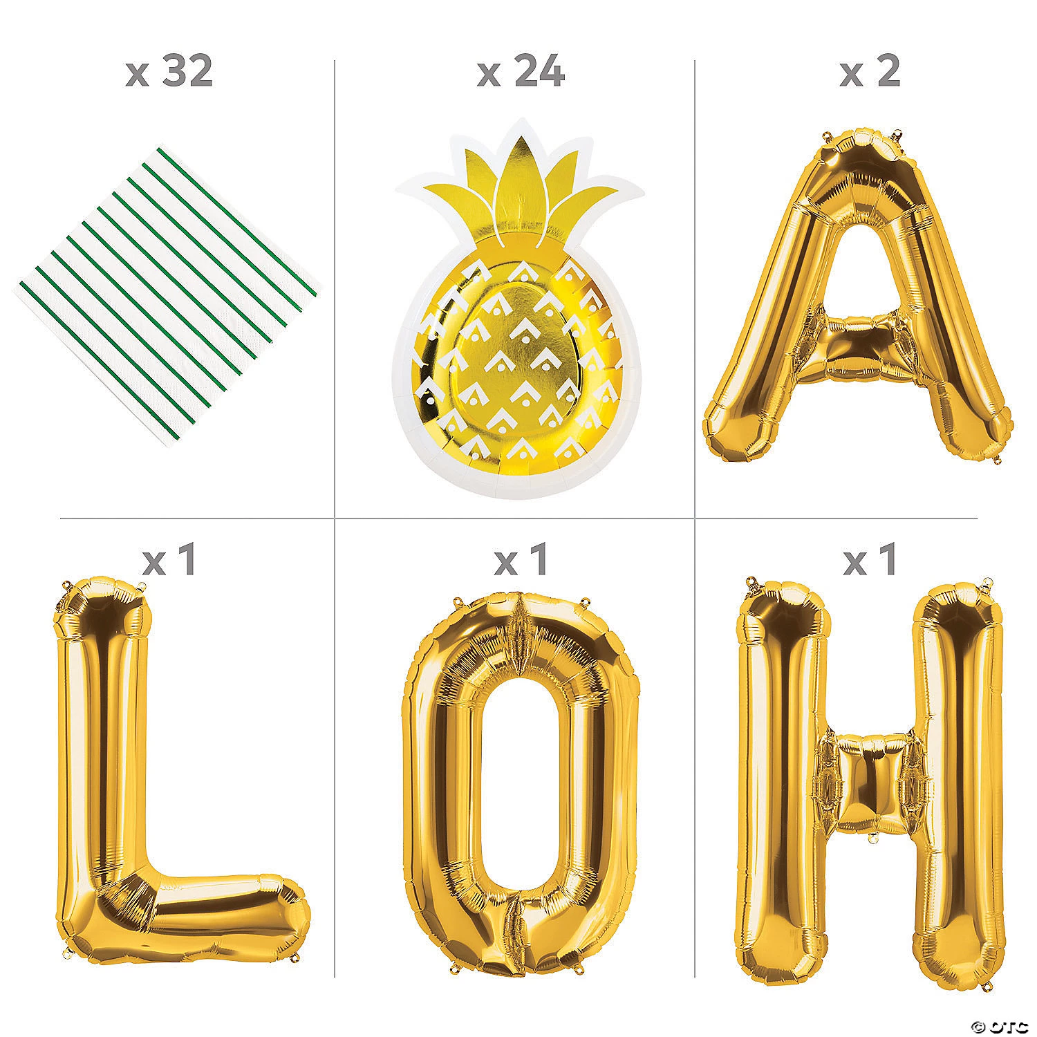 Treat party guests to a shiny “aloha” welcome with this impressive kit that’s full of everything you need to throw a metallic-themed tropical party for up to two dozen people. With enough plates, cups, napkins, cutlery and decorations to make party planning easy (and cleaning up afterward even easier!) this kit saves time and money. (253 pcs. per unit) Assortment may vary.