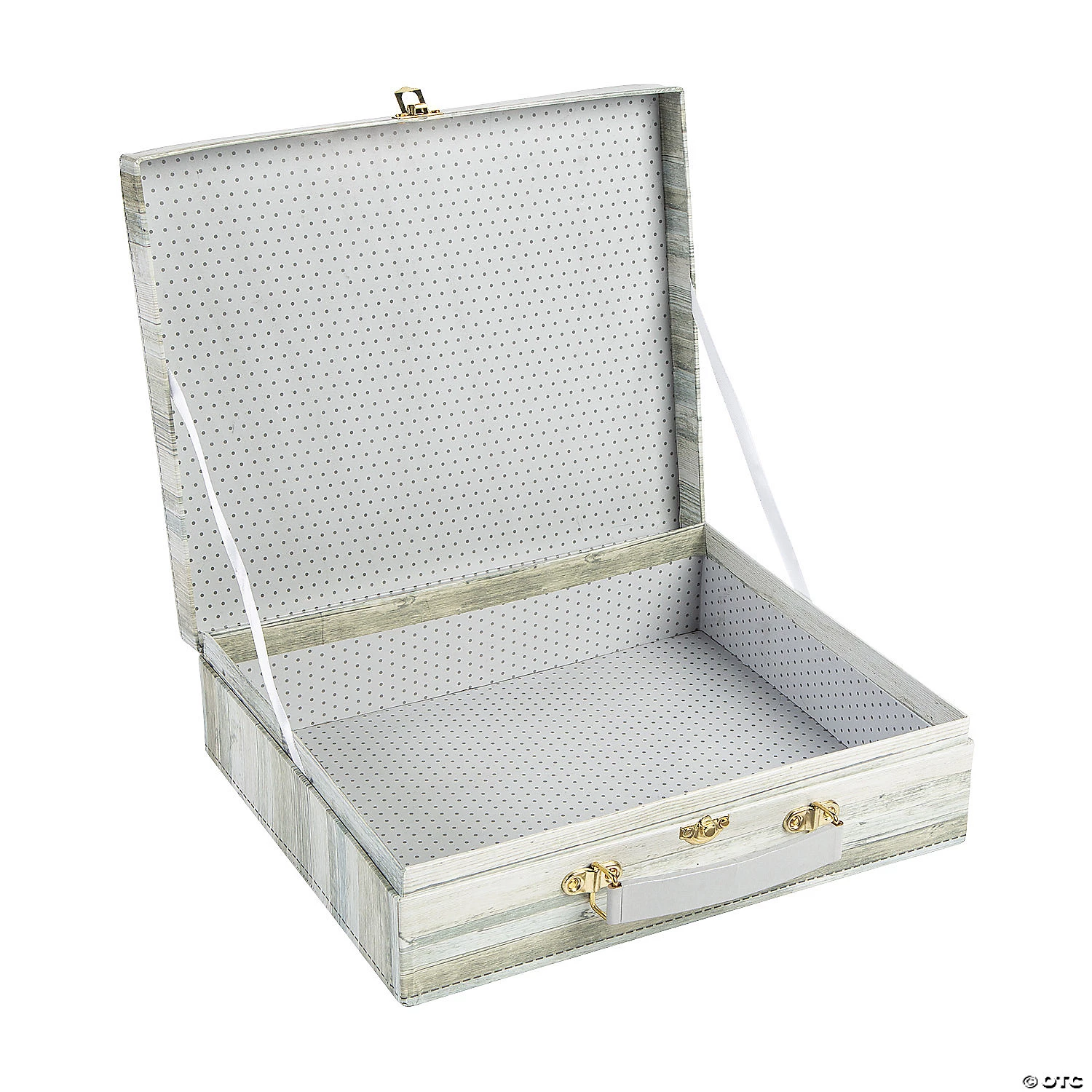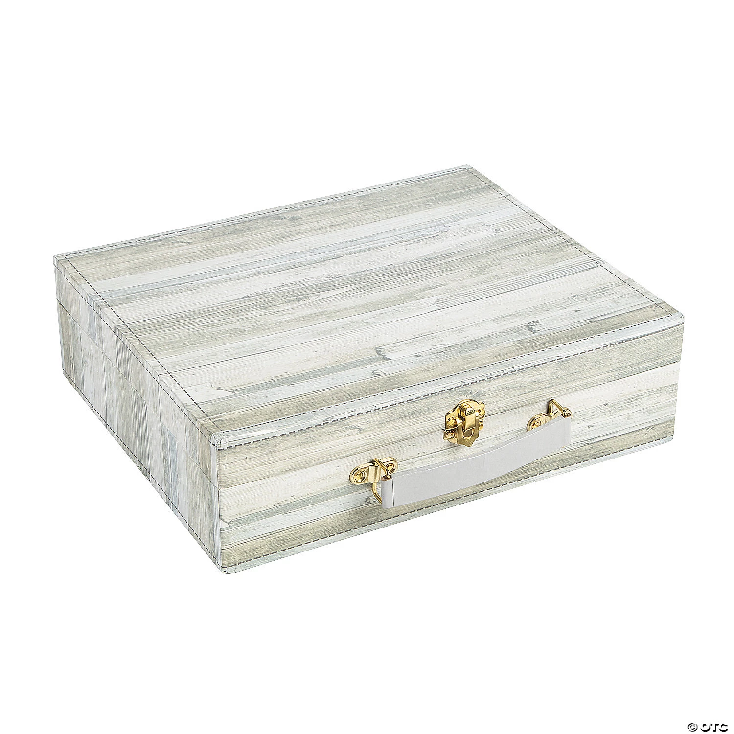 Accentuate your farmhouse wedding decorations with these rustic trunk centerpieces! Leave them closed and empty, or fill them with flowers, battery-operated candles or other décor for a special touch. This centerpiece also makes a great cardholder! Cardboard. 12″ x 10″ x 3 1/2″ © OTC