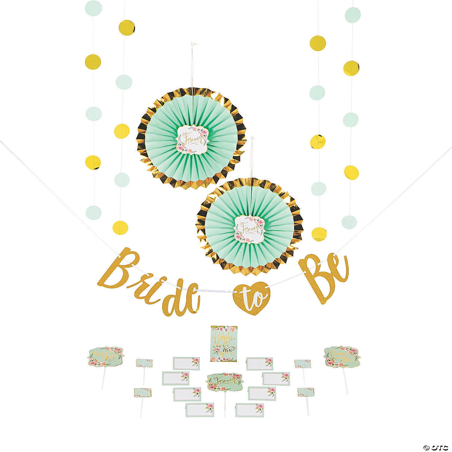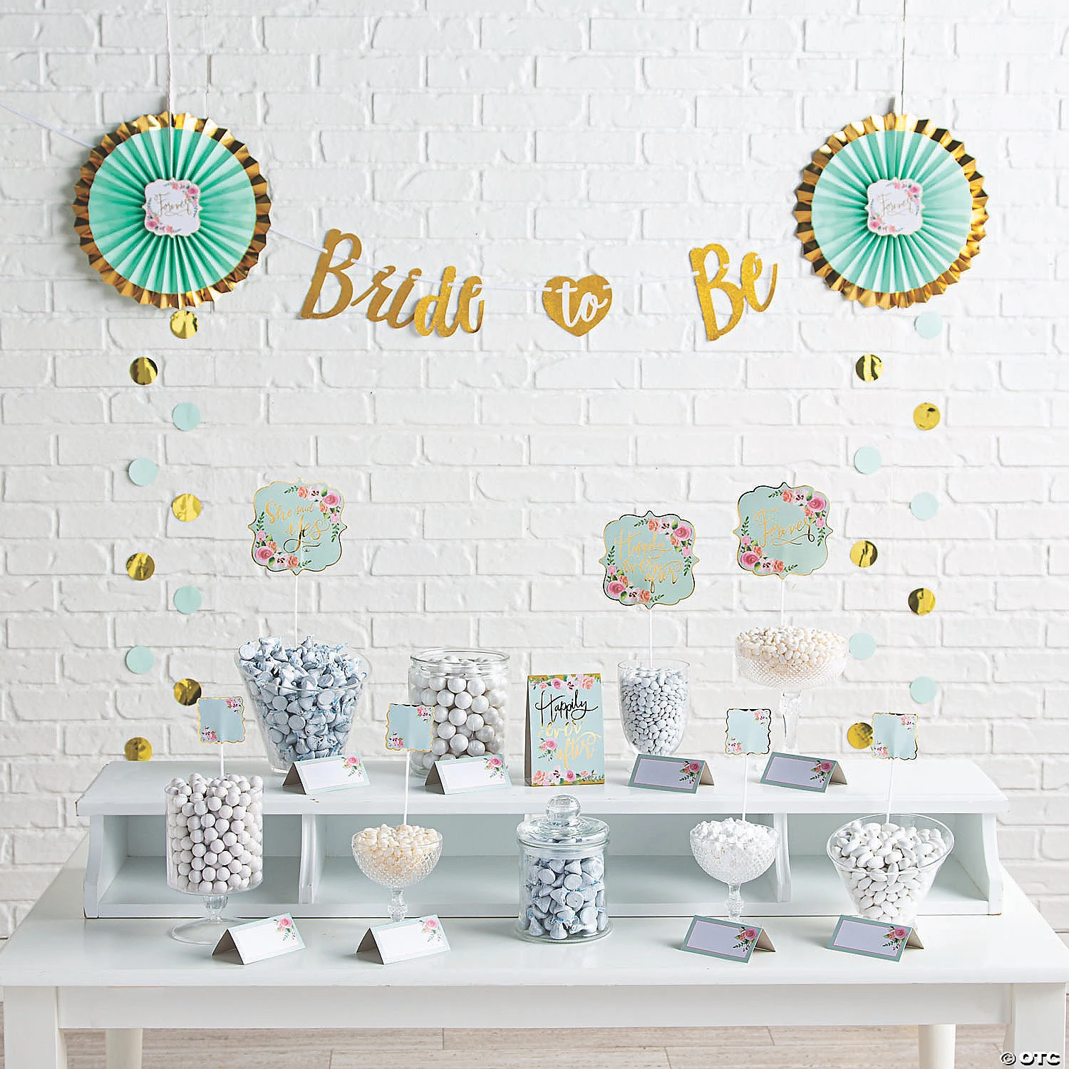 Planning a bridal shower? Transform your buffet table with the help of this bridal shower buffet table decorating kit! An awesome and affordable way to get most of your bridal shower decorating out of the way, each piece features a mint green color. Paper. (23 pcs. per unit) Includes one 6″ tent card, eight 2″ tent cards, four 7 1/4″ picks, three 12 1/2″ picks, four 6 ft. string decorations, one 9 ft. letter banner and two 16″ paper fan decorations. Simple assembly required.