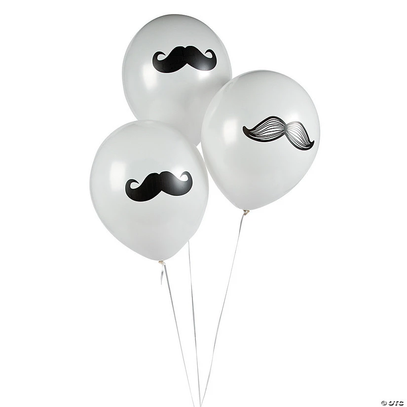 Mustache Latex Balloons. With each balloon featuring a manly mustache, these latex balloons are quite the dapper party decoration, indeed. Use them at Movember mustache parties, and for added fun, draw faces on these 11″ balloons using your own permanent markers. These balloons even make fun Cinco de Mayo decorations! © OTC