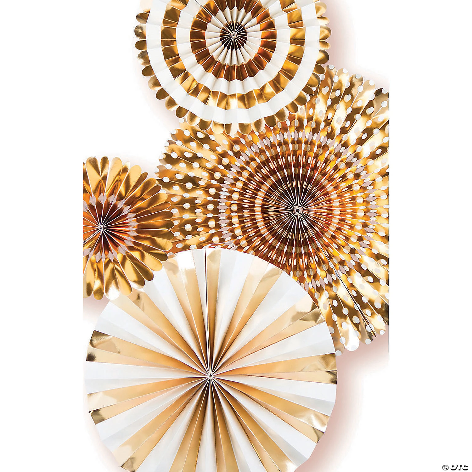 Draw attention to any part of your party space with these gold paper lanterns! Perfect for nearly any type of celebration, from weddings to birthday party décor, these fans can do it all. Double-sided. Paper. (4 pcs. per unit) 8″ – 17″ Simple assembly required.