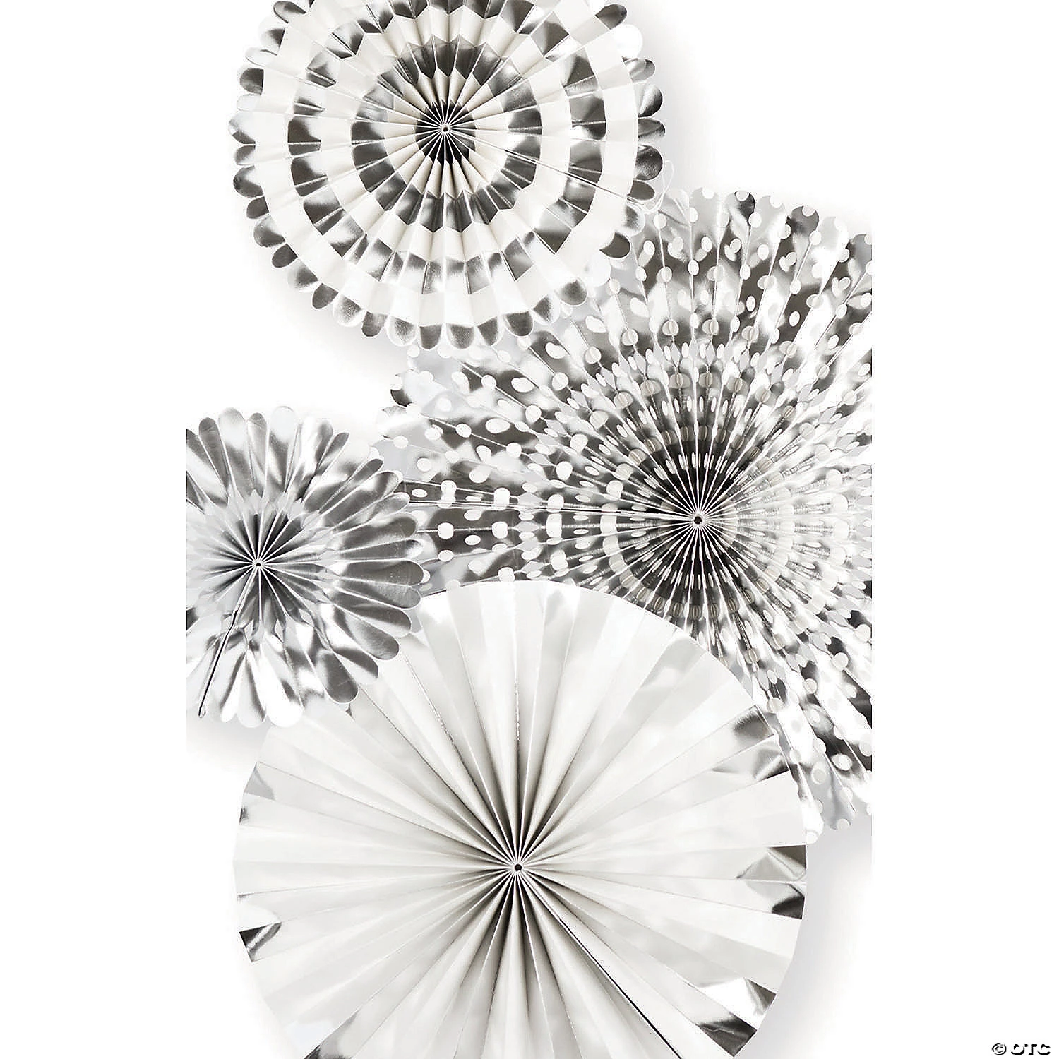 These metallic paper lanterns will make a wonderful addition to party decorations! Whether you’re celebrating a birthday or you need wedding reception or bridal shower decorations, these chic fans are the perfect pick. Double-sided. Paper. (4 pcs. per unit) 8″ – 17″ Simple assembly required.