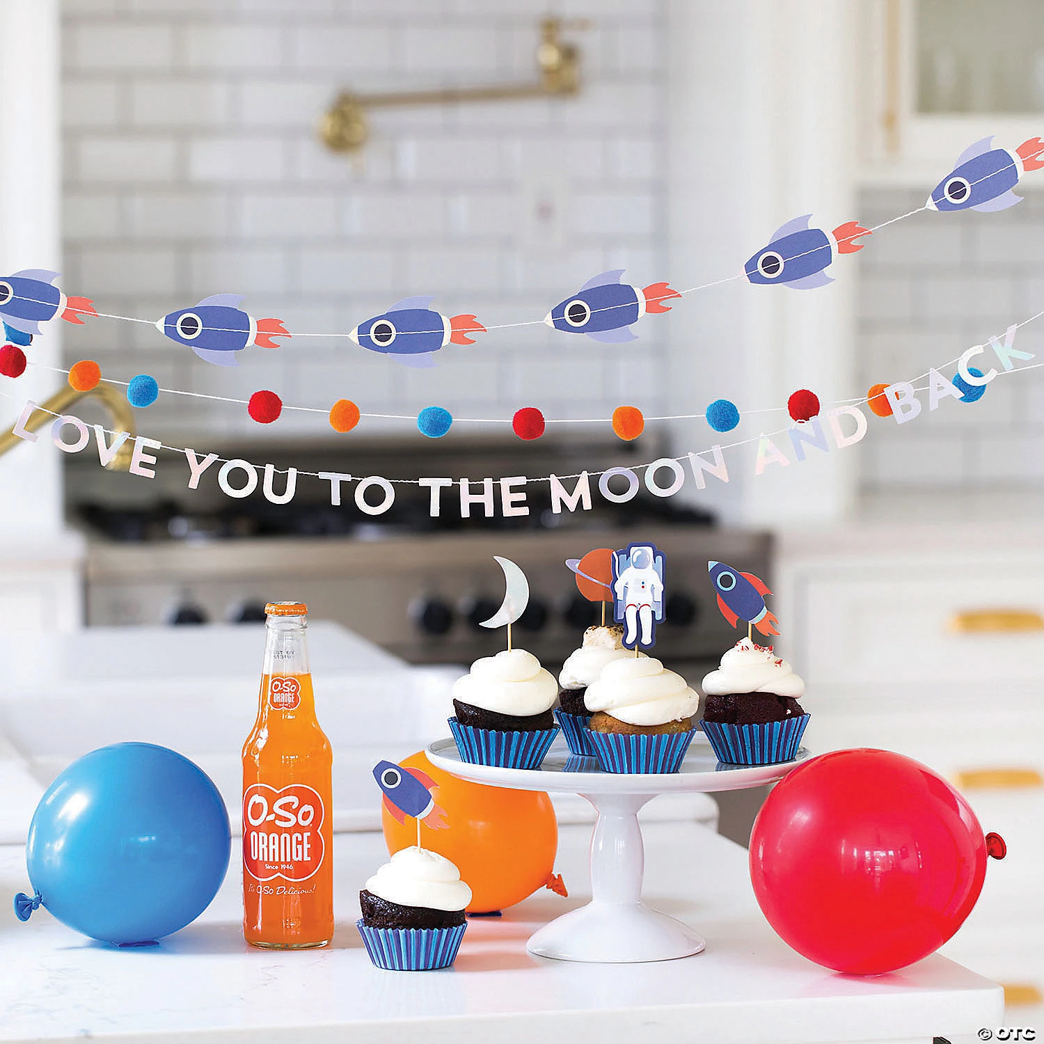 Don’t be surprised when kiddos moonwalk with excitement at first sight of this! Great for party supplies and birthday décor, this mini banner set features rockets blasting off and text that reads “Love You to the Moon and Back”. String behind the buffet or as part of a DIY photo booth to transform your celebration into the great wide galaxy! Paper. (3 pcs. per unit) 5 ft. © 2019 My Mind’s Eye Paper Goods