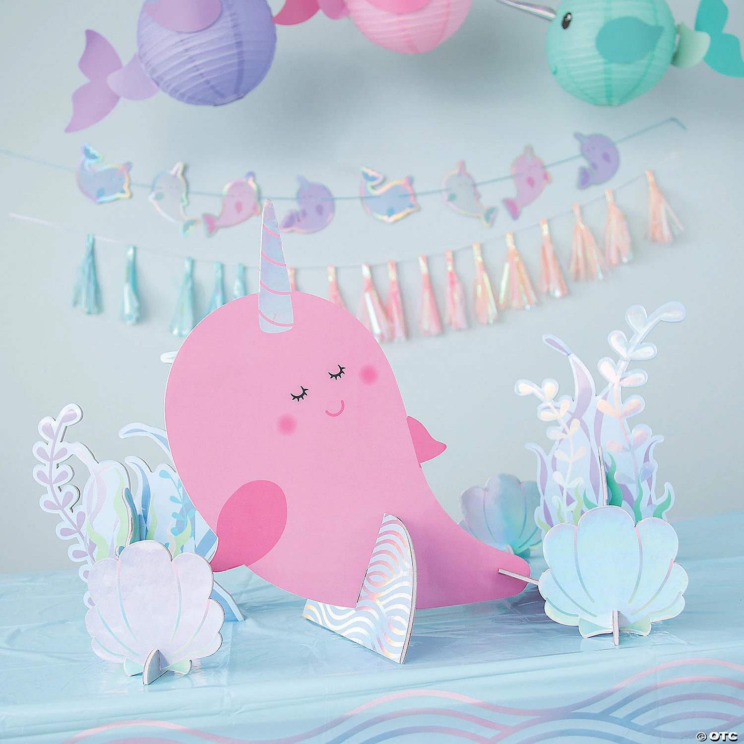 Get ready to shell-ebrate with unicorns of the sea! Designed as a narwhal chilling among iridescent coral reefs, this centerpiece set will make waves when added to birthday party supplies. Proving to be much more than just a whale with a horn, this narwhal is simply magical as she’ll set the mood for a one-of-kind, splish-splashin’ soirée when set on the buffet. Foam. (6 pcs. per set) 3 1/2″ – 17 1/2″ x 4 1/2″ – 19 1/4″ Simple assembly required. © OTC
