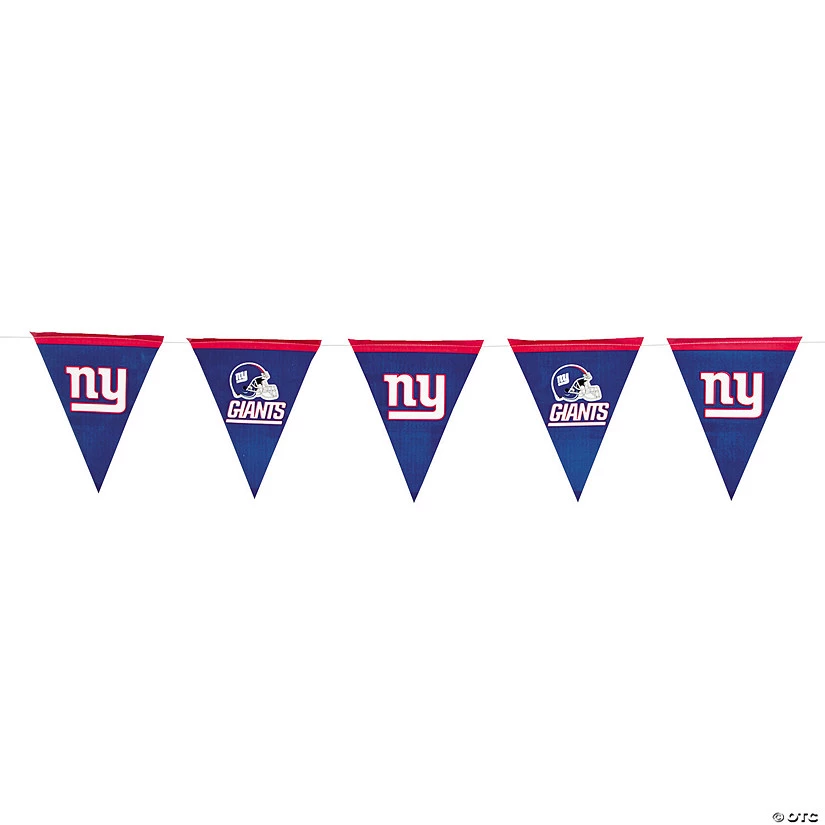 Make some noise with New York Giants fans when you hang this Giants pennant banner as a football party decoration. With 12 feet of blue and red New York Giants decorations across the wall, bar or at the tailgate party, team spirit will be huge! Cheer the team onto victory by coordinating this Giants party decoration with our entire line of NFL® New York Giants™ party supplies and tableware. Plastic. 12 ft. © NFL Properties LLC