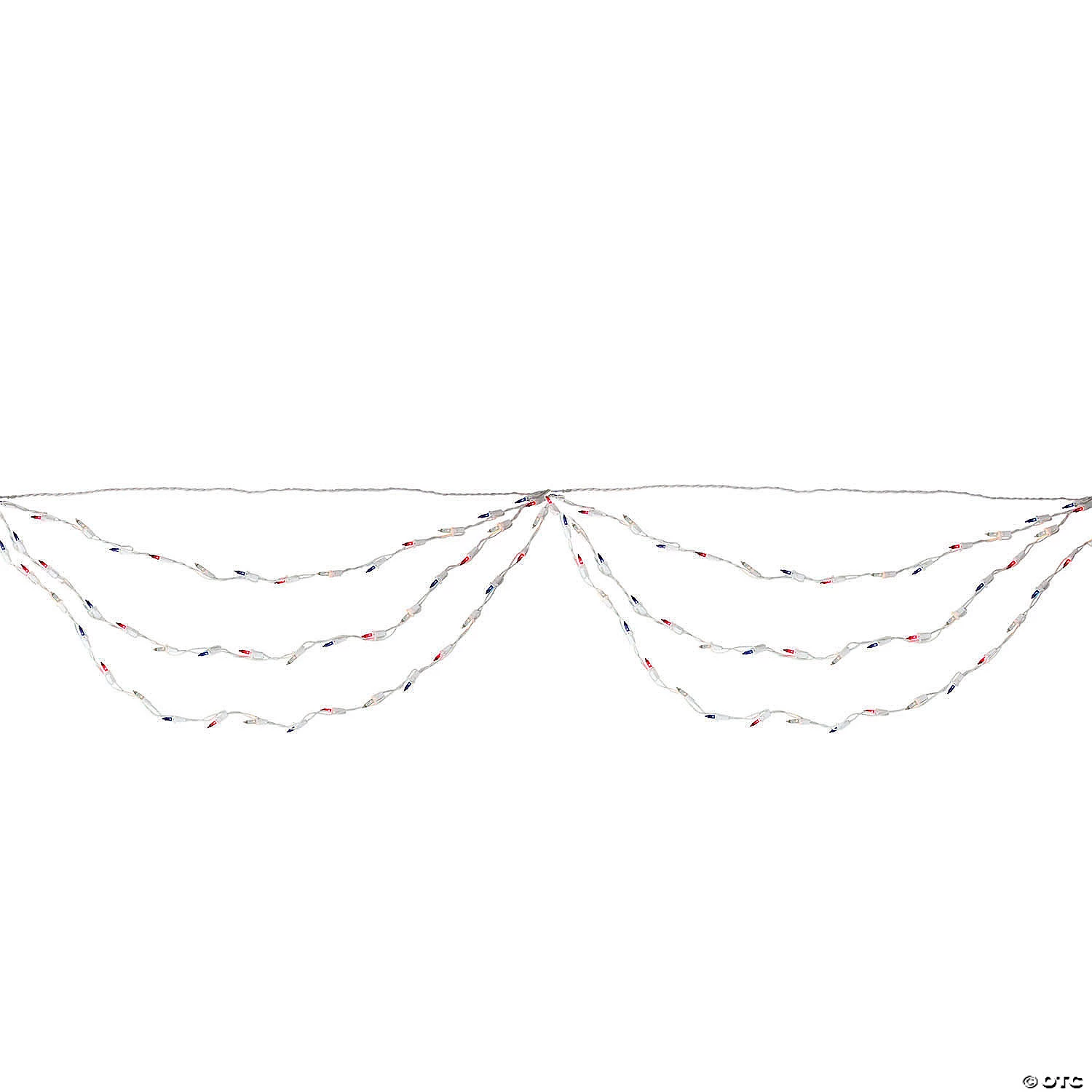 Show your American pride and let freedom ring with these traditional patriotic Independence day themed lightings. Swag lights are perfect for hanging along your porch or outdoor fencing. These are also ideal for a Memorial day celebration. Product Features: Color: red blue and clear bulbs / white wire Number of bulbs on swag: 100 Bulb size: mini Approximate lighted length: 6′ Approximate total length: 6.5′ 3″ lead cord 3″ tail cord Additional Product Features: If one bulb burns out the rest will stay lit Contains end-to-end connectors which allows you to connect multiple sets together (not to exceed 210 watts) Comes with replacement bulbs and spare fuse UL certified and approved for indoor or outdoor use Wire gauge: 22 120 volts 60 hertz 0.34 amps 40.8 watts Special Shipping Information: This item ships separately from other items in your order. This item cannot ship to a P.O. Box. This item may be subject to additional processing days. ITEM IS NOT ELIGIBLE FOR EXPEDITED SHIPPING