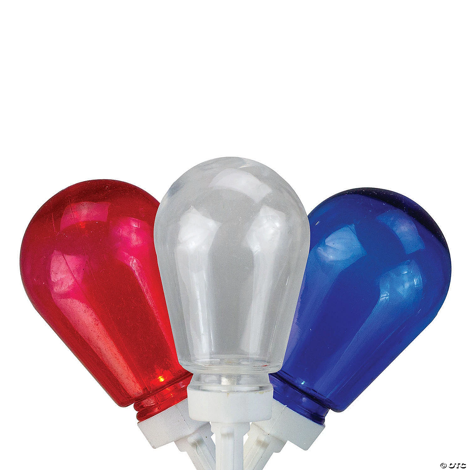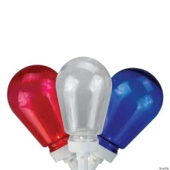 This 4th of July enlighten the patriot in you with these colorful string lights! Hang it as a complete series on your wall ceilings or fences in your backyards or hallways and spread the eternal glow. These energy-efficient LED lights not only illuminate the pathway but also welcome your guests with warmth and affection. Product Features: Color: red blue and white bulbs / white wire Number of bulbs on string: 10 Bulb size: concave wide angle with Edison style bulb cover Bulb shape: ST40 Spacing between each bulb: 12″ Lighted length: 9′ (approximately) Total length: 10′ (approximately) 6″ lead cord 6″ tail cord Additional Product Features: Each light has a clip on their base so you can easily attach the lights to your tree or other desired surfaces Bulbs easily screw in and out UL certified and approved for indoor or outdoor use Contains end-to-end connectors which allow you to connect multiple sets together (not to exceed 210 watts) Wire gauge: 20 120 volts 60 hertz 0.02 amps 2.4 watts Material(s): plastic/wire Special Shipping Information: This item ships separately from other items in your order. This item cannot ship to a P.O. Box. This item may be subject to additional processing days. ITEM IS NOT ELIGIBLE FOR EXPEDITED SHIPPING
