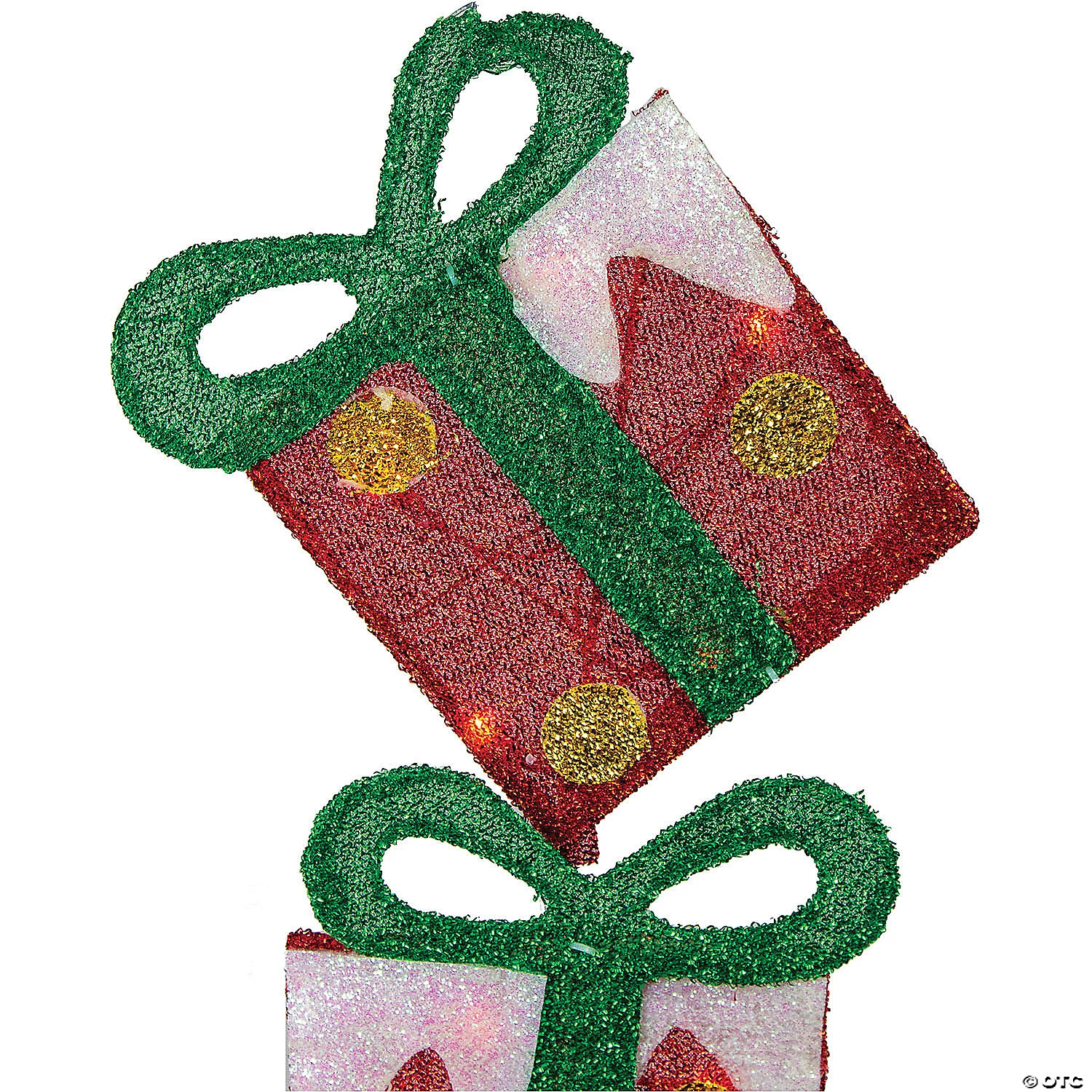 Keep your home in-line with the fast-changing trends! Shop this stunning lighted outdoor decor comprising adorable gift boxes in a stacked arrangement embellished with polka dots and verdant bows. Situate this lovely piece of decoration in your patio and leave your guests guessing what’s inside! Product Features: Pre-lit with 20 clear lights. Bulb size: mini. 72″ white lead cord. One-sided design. Stacked red gift boxes with gold polka dots. Designed with faux snow and green bows. Easy assembly – no tools required. UL listed and approved for indoor or outdoor use. Contains 1 plug with end connector which allows you to stack multiple decorations together (not to exceed 210 watts). Gift box decorations are attached to each other and cannot be separated when displayed. Comes with replacement bulbs and spare fuse. Wire gauge: 22 120 volts 60 hertz .08 amps 9.6 watts. Dimensions: 44″ high x 12.5″ wide (measured at the widest point). Material(s): tinsel/metal/glass bulbs/wire/plastic. Note: ground stakes are not included Special Shipping Information: This item ships separately from other items in your order. This item cannot ship to a P.O. Box. This item may be subject to additional processing days. ITEM IS NOT ELIGIBLE FOR EXPEDITED SHIPPING