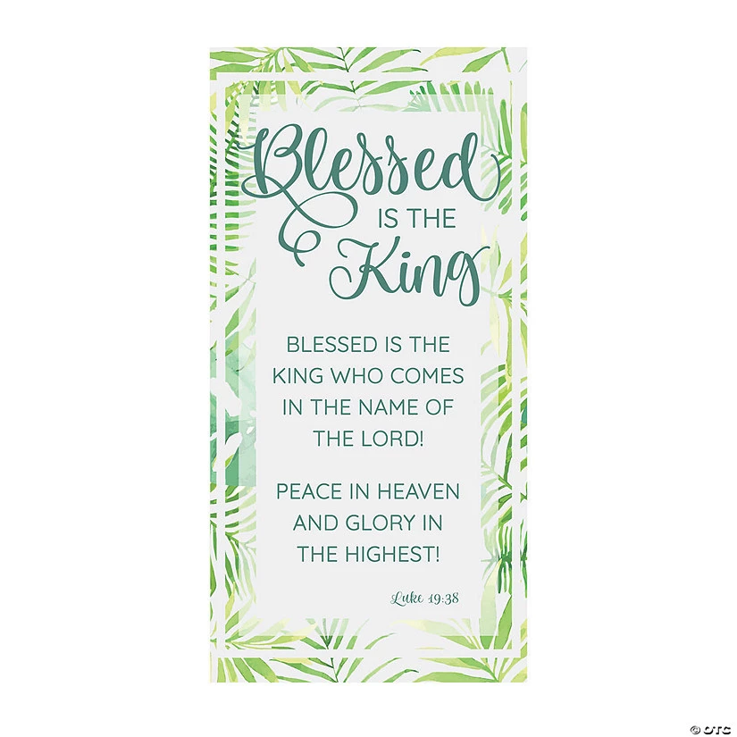 Are you looking for an easy way to decorate your church, Sunday School classroom or private school hallways for Palm Sunday? This beautiful banner is printed with Luke 19:38 and features gorgeous palm leaves. Add this Palm Sunday decoration to any space. Vinyl. 3 ft. x 6 ft. © OTC