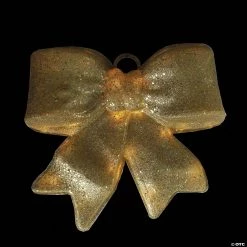 PENN – 16″ Gold Glittered Battery Operated Lighted LED Bow Christmas Decoration