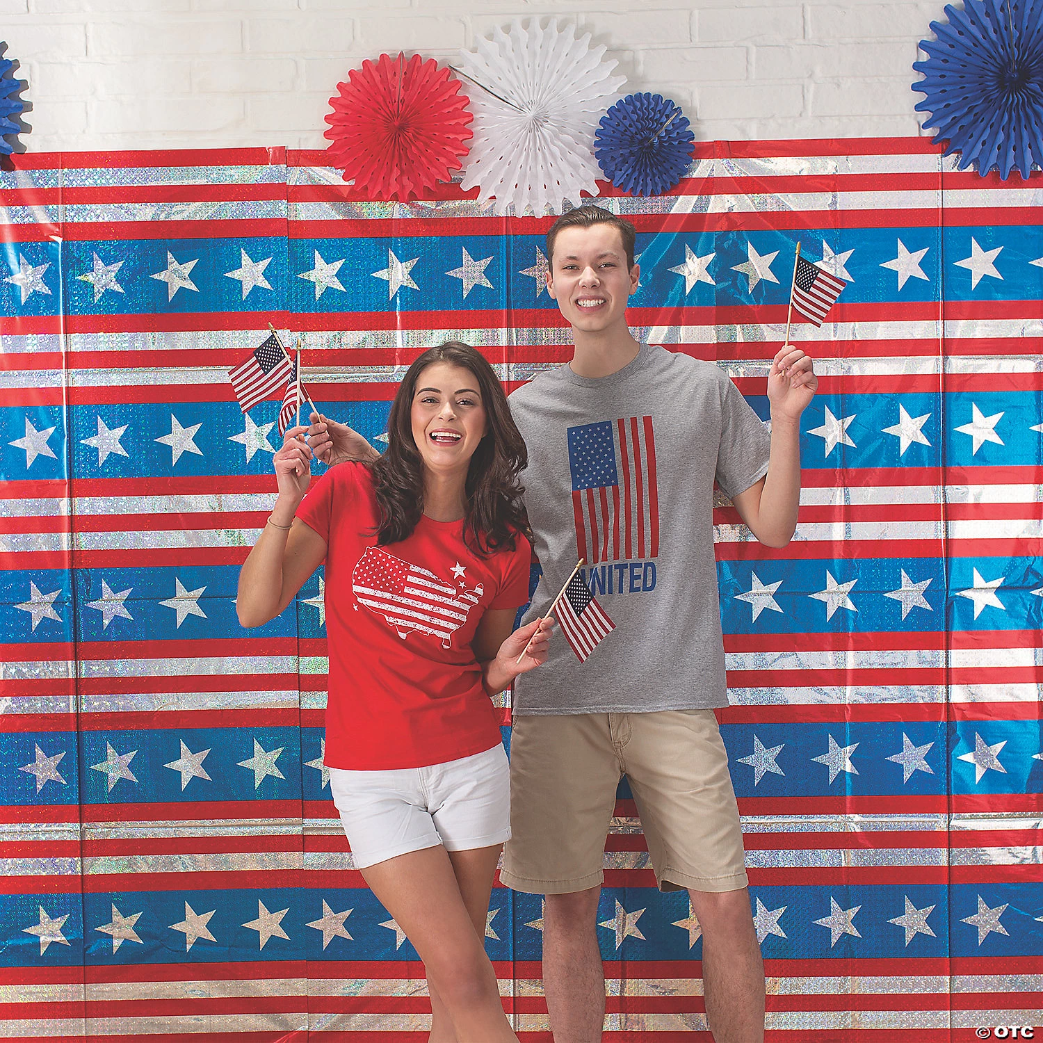 Perfect as a backdrop for photos or as a patriotic wall decoration, this three-piece banner can be displayed all together as a backdrop or separately to cover wall space at a patriotic celebration like Fourth of July, Veterans Day or a Memorial Day event. Celebrate America with this impressive holographic decoration. Plastic. (3 pcs. per set) Assembled, 9 ft. x 6 ft. Simple assembly required.