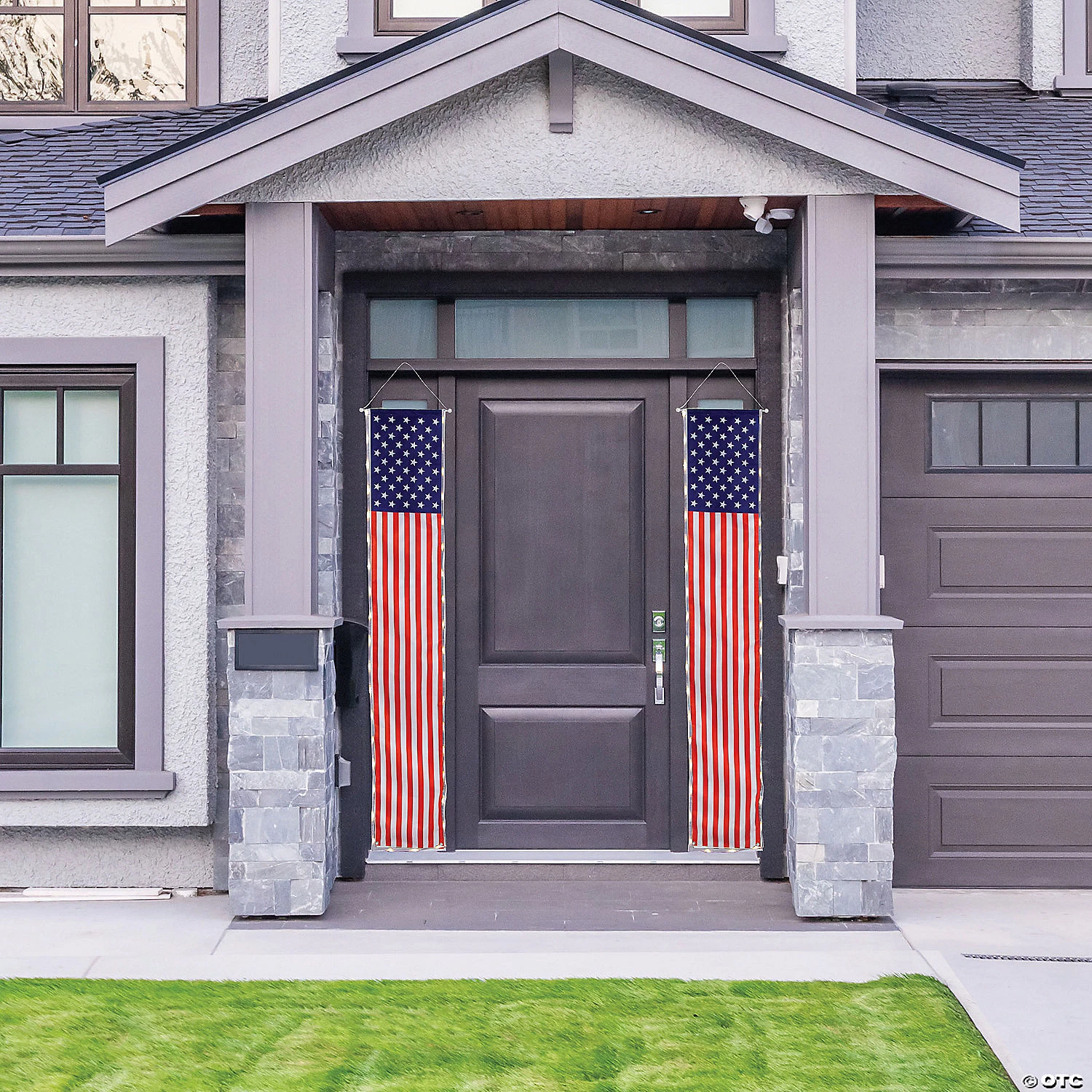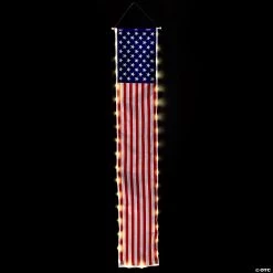 Light up your home with this patriotic décor! This set features two beautiful flag banners with string lights that would look great hanging from your front porch, on a wall or anywhere throughout your house. These decorations are ideal for Memorial Day, Fourth of July, Veterans Day or as everyday décor. Each flag includes battery operated string lights located inside the edge of the banner. For indoor or outdoor use. Polyester. (2 pcs. per set) 12″ x 71″ Imported. Requires 3 “AA” batteries, not included. © OTC