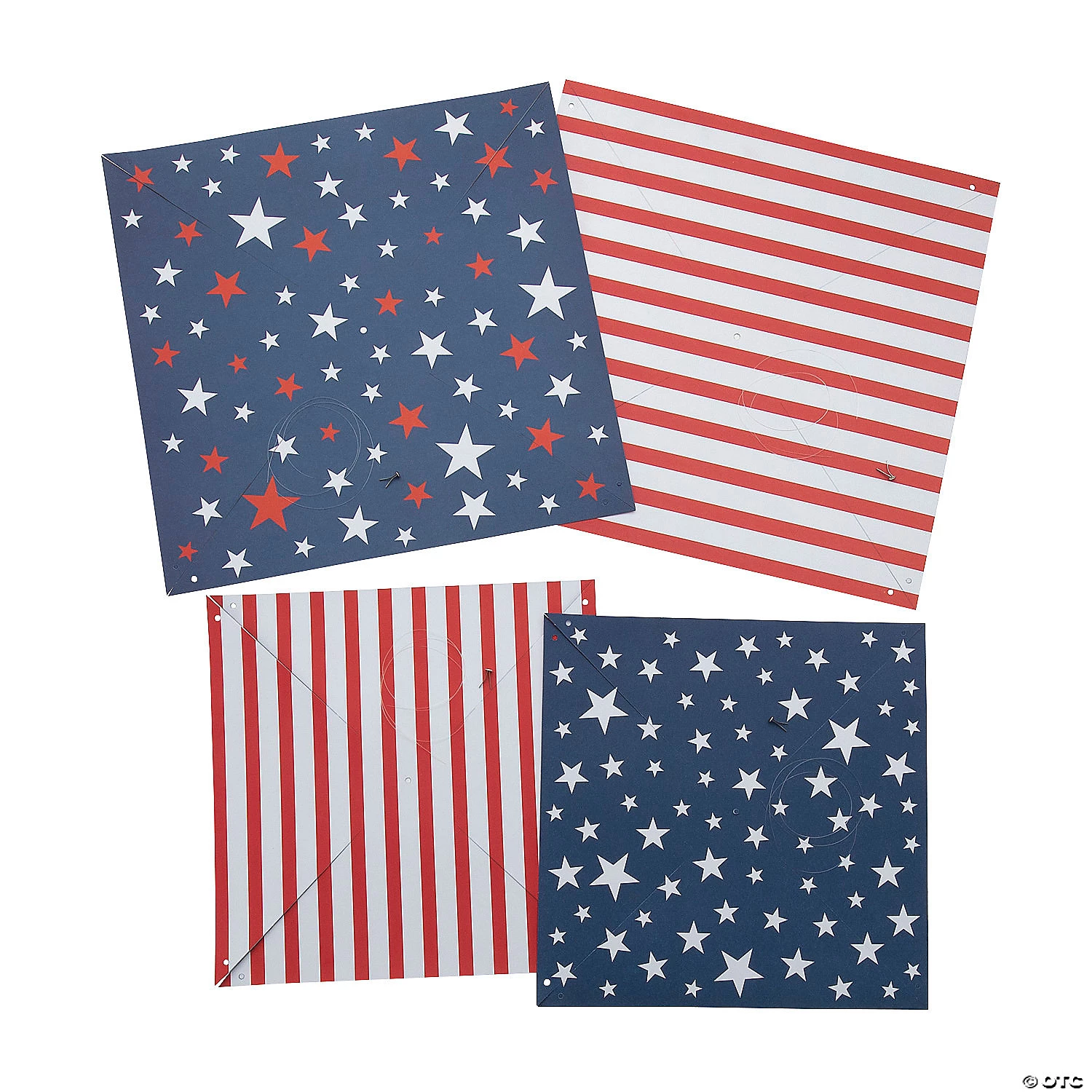 There’s plenty of patriotic pride in these pinwheels! Featuring fun red, white and blue designs with stars and stripes, these pinwheels are great for home décor, Fourth of July, Memorial Day and Veterans Day parties and events. Hang these decorations above the food and cake table or anywhere throughout the event space. Includes metal brads and string. Cardstock. (6 pcs. per unit) 11 1/2″ – 14 1/4″ x 11 1/2″ – 14 1/4″ © OTC
