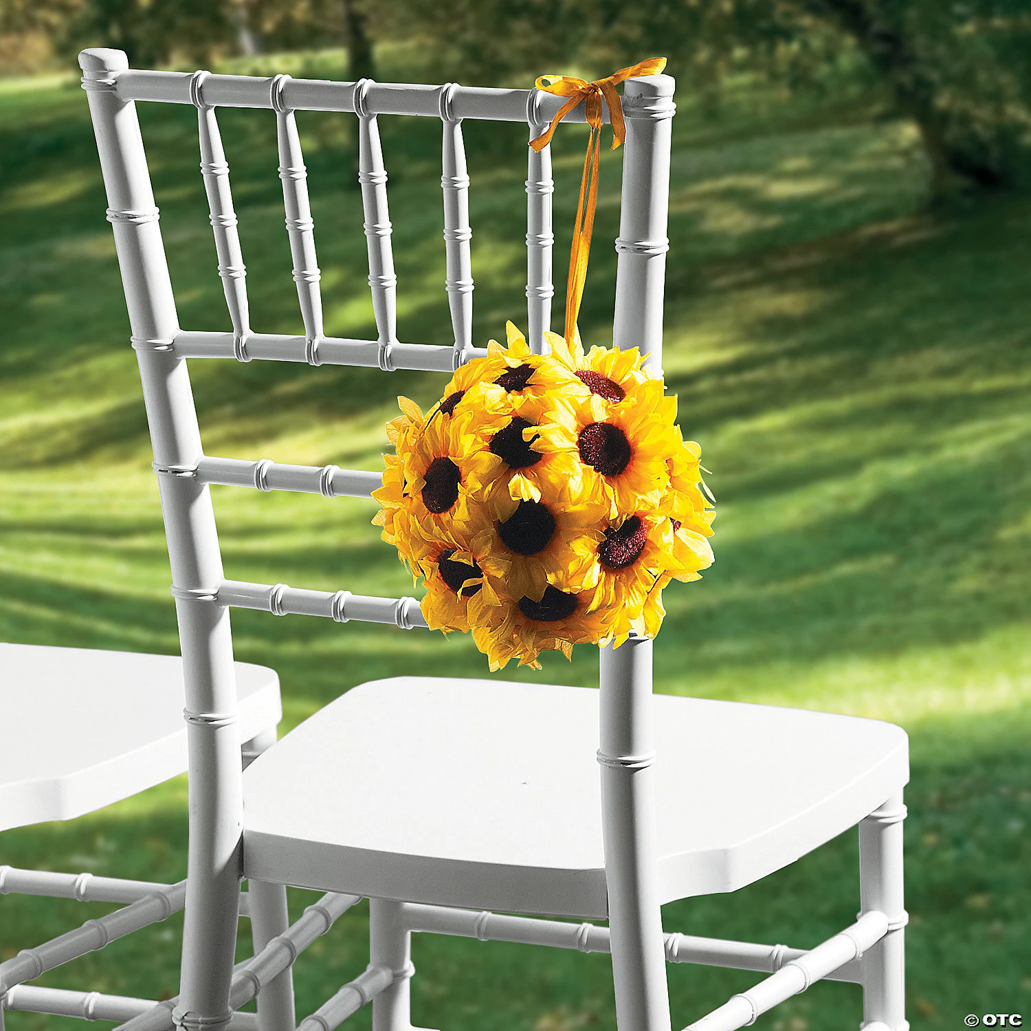 Accent your wedding décor with this hanging decoration. Perfect for a yellow wedding color scheme or if you are using sunflowers, hang this pomander wedding decoration in your wedding aisle, at your reception or with the rest of your wedding flowers. Polyester and nylon. 7″ diam.