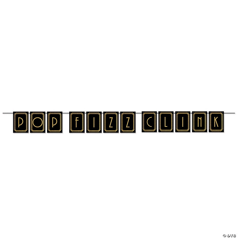Printed with “Pop Fizz Clink” in gold lettering, this Art Deco party decoration is perfect for a Roaring 20s theme or Great Gatsby party! String up the party banner above your mimosa bar or champagne fountain for the perfect finishing touch. Need more black and gold décor? There’s more where this came from, darling – right here on our website! Paper. 12 ft. x 6 1/4″