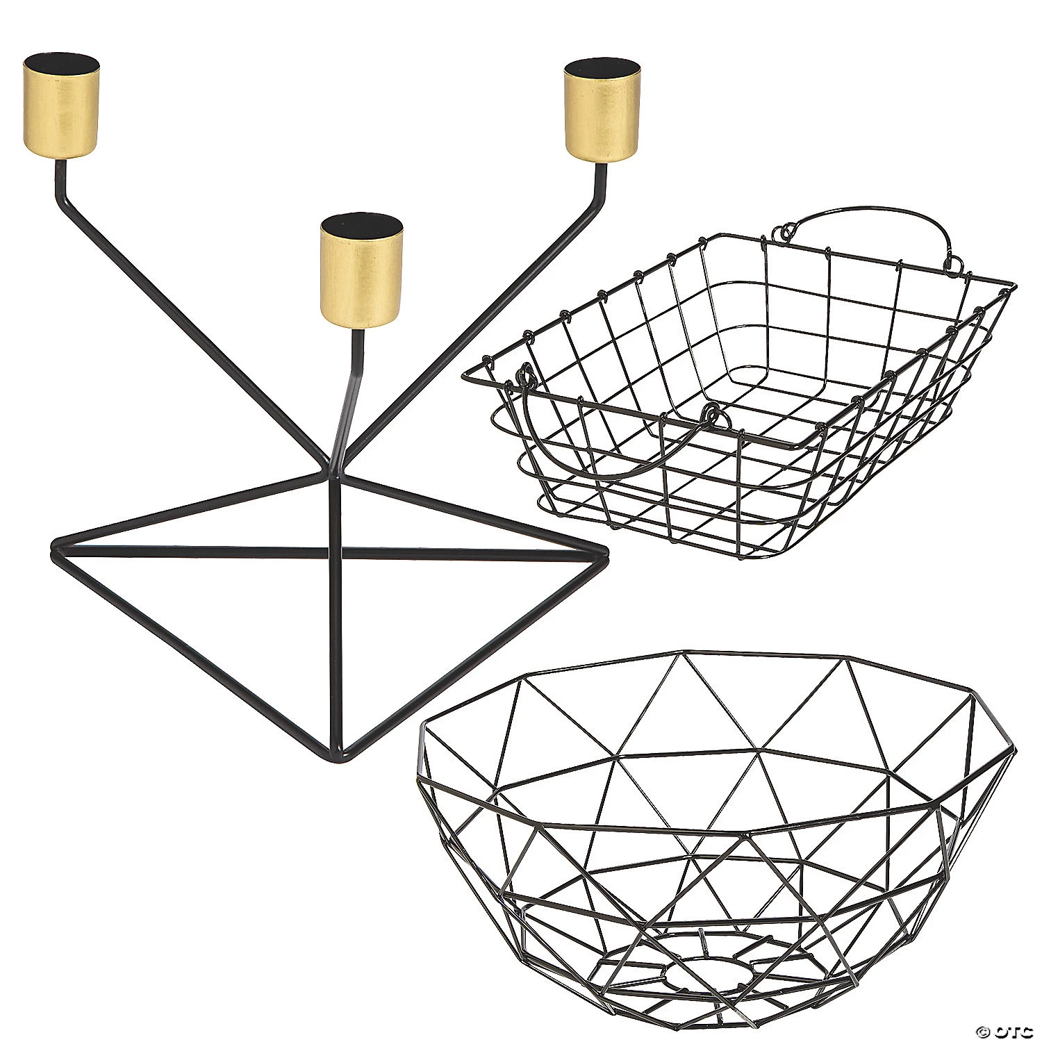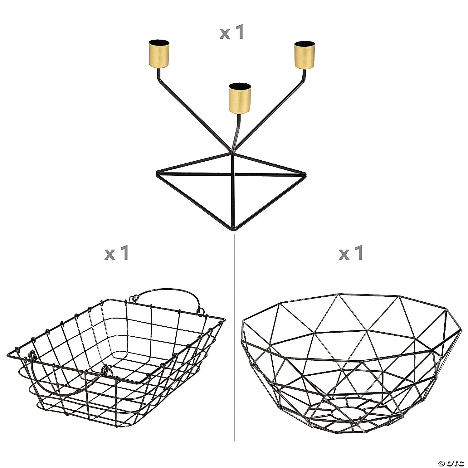 Are you looking for a fresh and clean look for your home decor? Use the pieces from this decorating kit to add a modern boost to any interior space. The geometric shapes of the wire pieces within this kit will quickly refresh the look of your home decor and easily bring some decorative cohesion to any space. When rustic style meets modern looks, Positively Simple home décor emerges! Clean lines, natural elements and a neutral palette pair well with any color theme so you can make your home decorations both positively simple and uniquely yours. (3 pcs. per unit) Assortment may vary.Includes:• 1 Metal Geometric Triangle Taper Candle Holder (7″ x 7″ x 6 1/4″)• 1 Metal Rectangle Wire Basket (7 1/2″ x 10 1/2″ x 3″)• 1 Metal Round Wire Basket (12″ x 12″ x 5 1/4″)