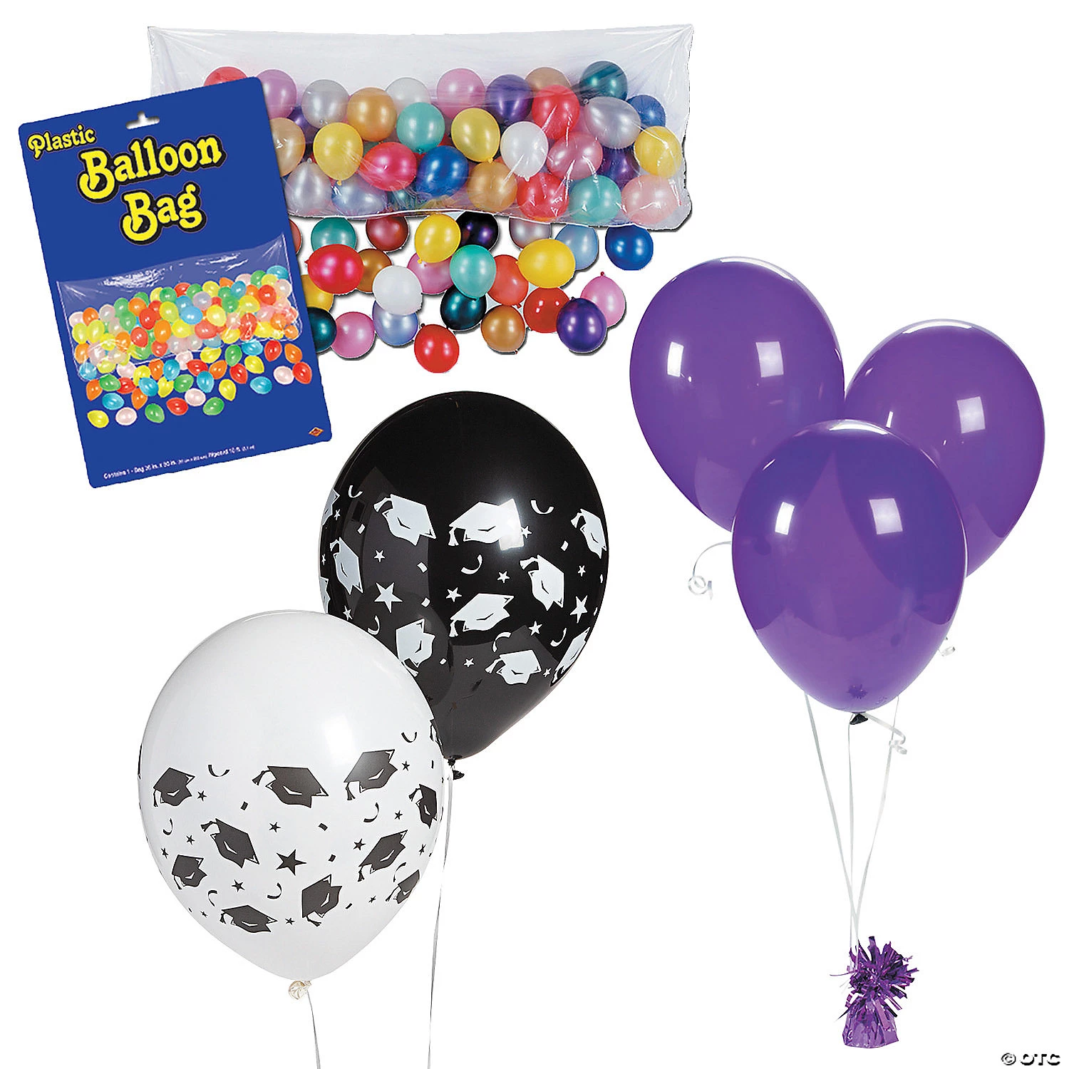 Shower grads in a purple celebration with this balloon drop kit! This kit makes it easy to create a purple balloon drop moment for a graduation ceremony or graduation party. A balloon drop helps the graduates enjoy a crescendo moment at graduation and makes for an exciting memory they’ll treasure. (97 pcs. per unit) Assortment may vary. Simple assembly required. © OTC Includes:• 72 Purple Latex Balloons (11″)• 24 Black & White Graduation Latex Balloons (11″)• 1 Plastic Balloon Drop Bag (6 ft. 8″ x 3 ft.)