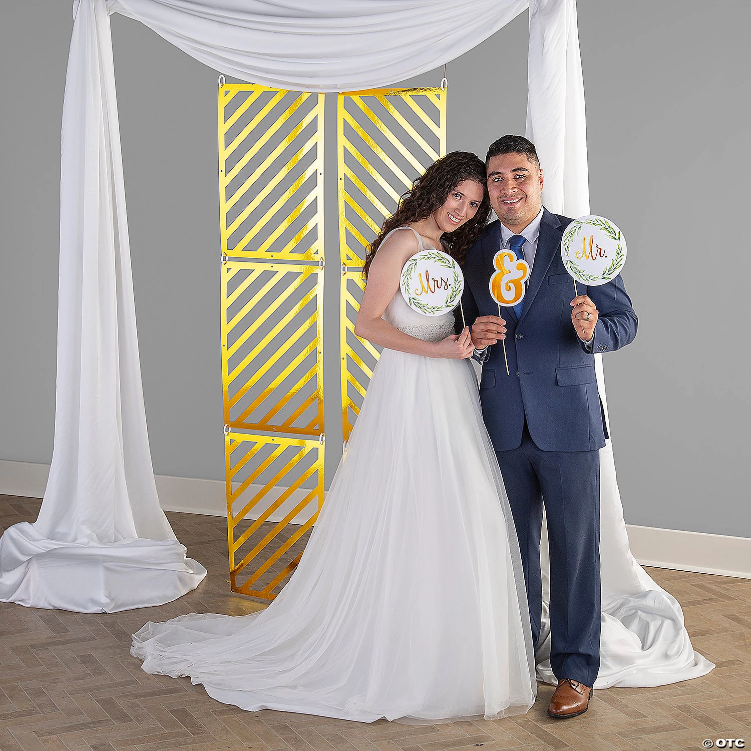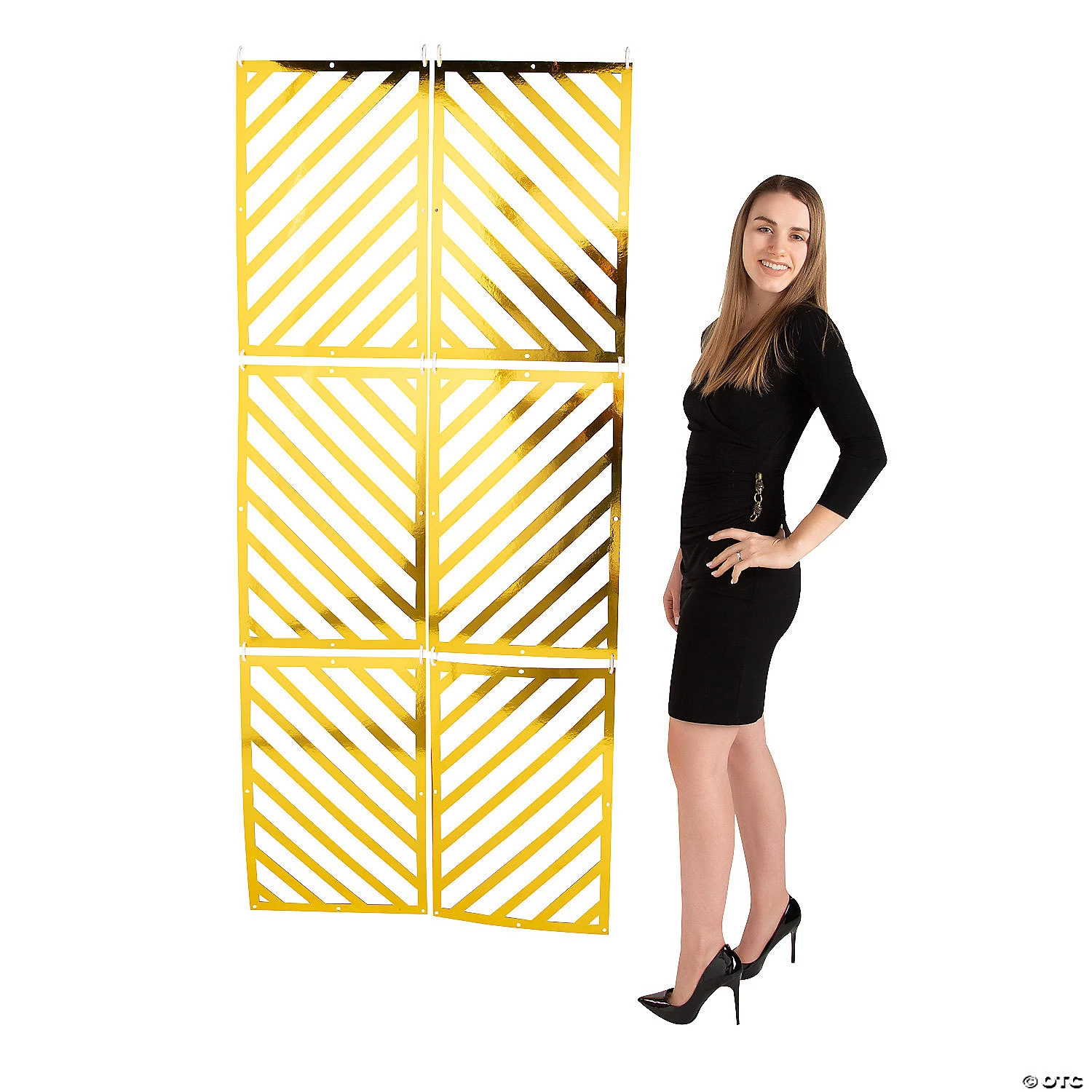 Add some chic shine to your event with this impressive backdrop. Featuring a gold foil look and a geometric design, this backdrop looks great in photos and as a party decoration. Class up plain walls or create a scene for photos with this tall backdrop. This backdrop is a fantastic choice for gatherings featuring a gold theme. Cardboard. Assembled, 32″ x 72″. Simple assembly requires. Includes plastic zip ties. © OTC