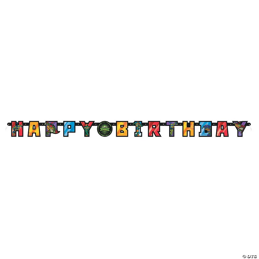 Looking for TMNT party decorations? There’s no better way to start getting your space ninja turtle ready than with this jointed birthday banner. Featuring images of Leonardo, Raphael, Michaelangelo and Donatello, it’ll easily match the rest of your Teenage Mutant Ninja Turtles™ birthday party supplies. Cardstock. 6 ft. © Viacom International Inc.